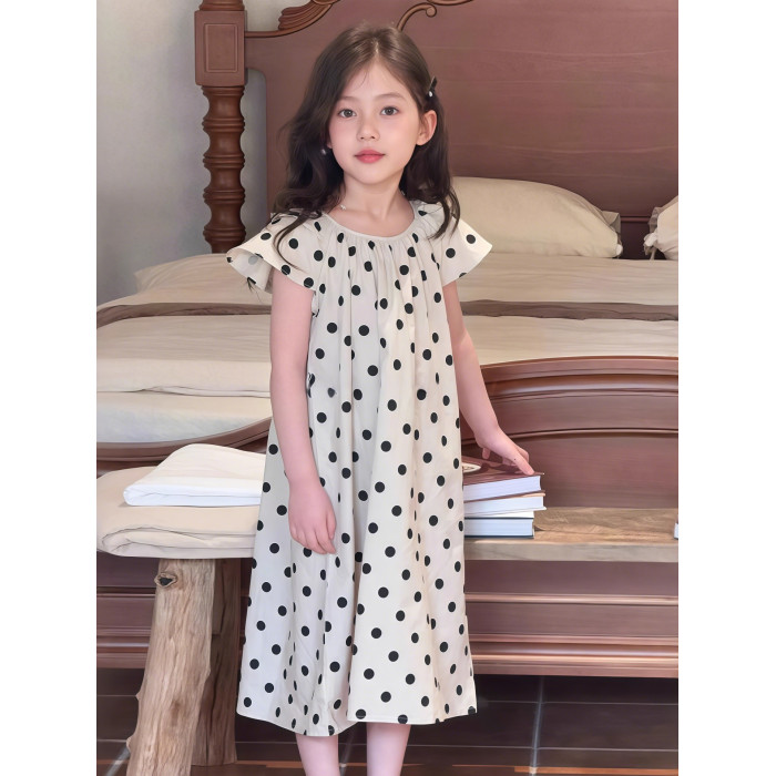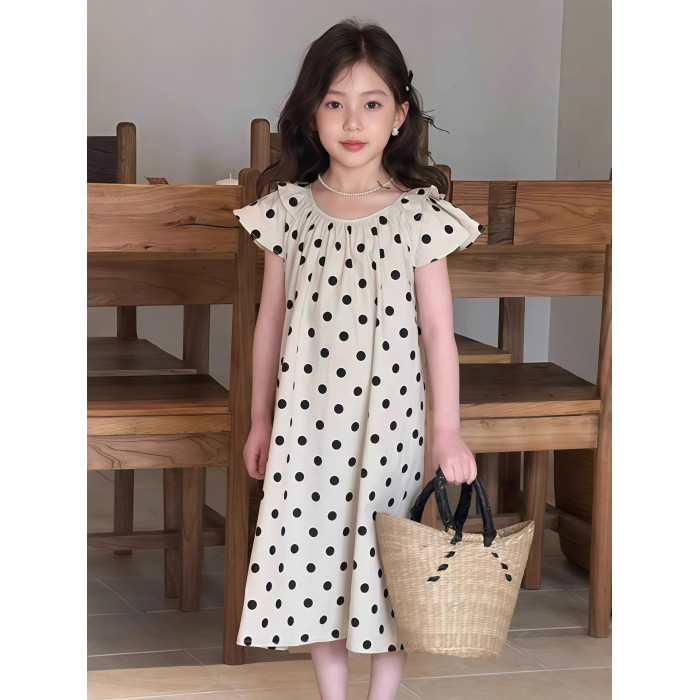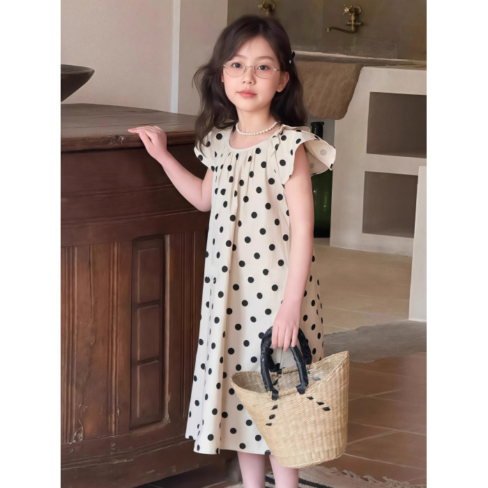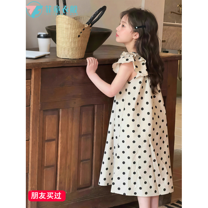 女童波點連衣裙夏裝2025新款兒童夏季韓版洋氣獨特漂亮的裙子女孩