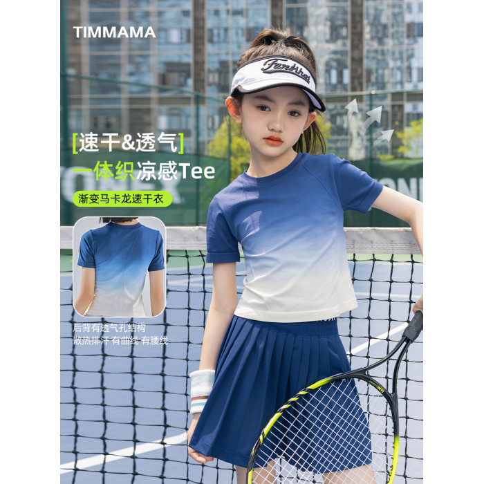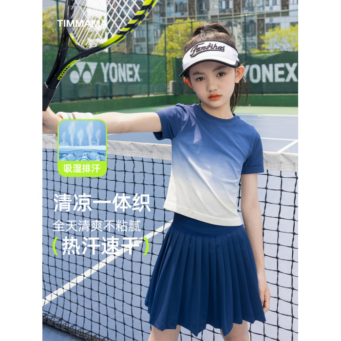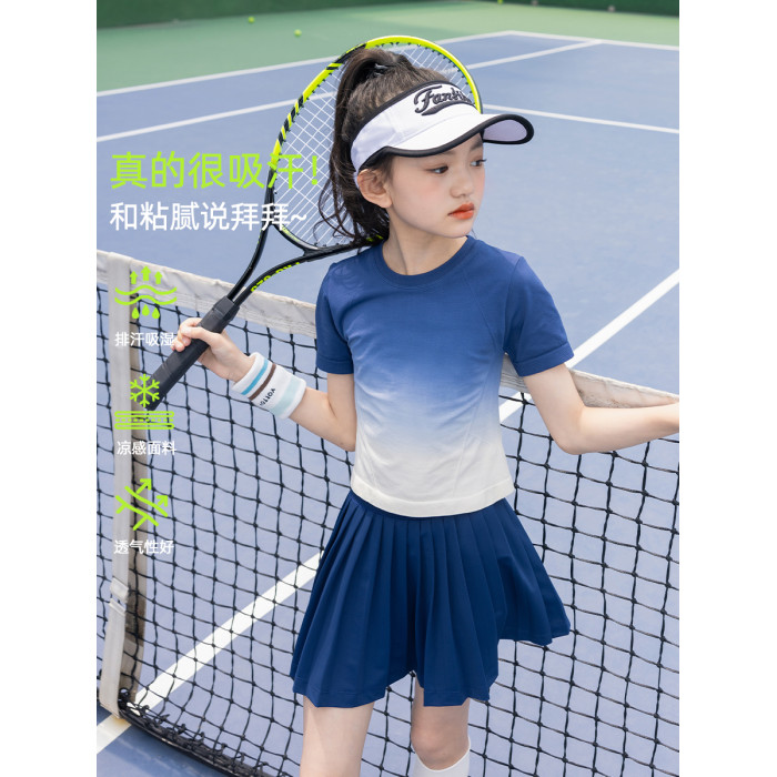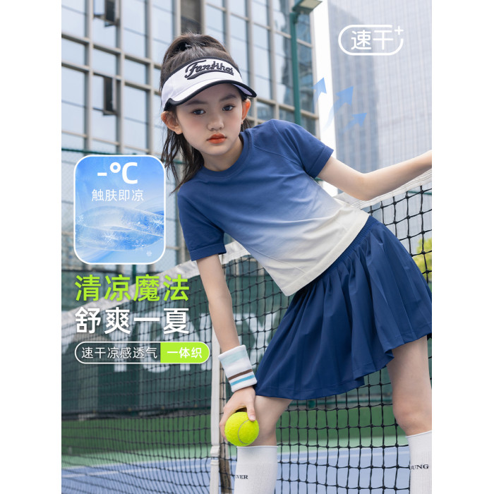 女童速乾衣夏季新款兒童網球訓練服套裝女大童運動T恤短袖羽毛球