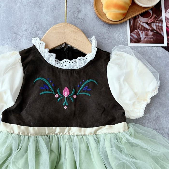 日單夏季女童短袖連衣裙安娜禮服紗裙冰雪奇緣公主裙女寶蓬蓬裙