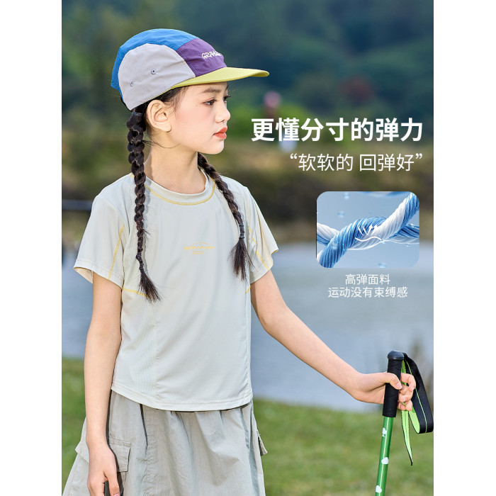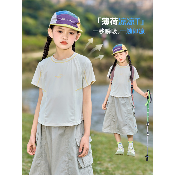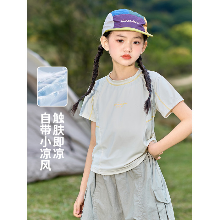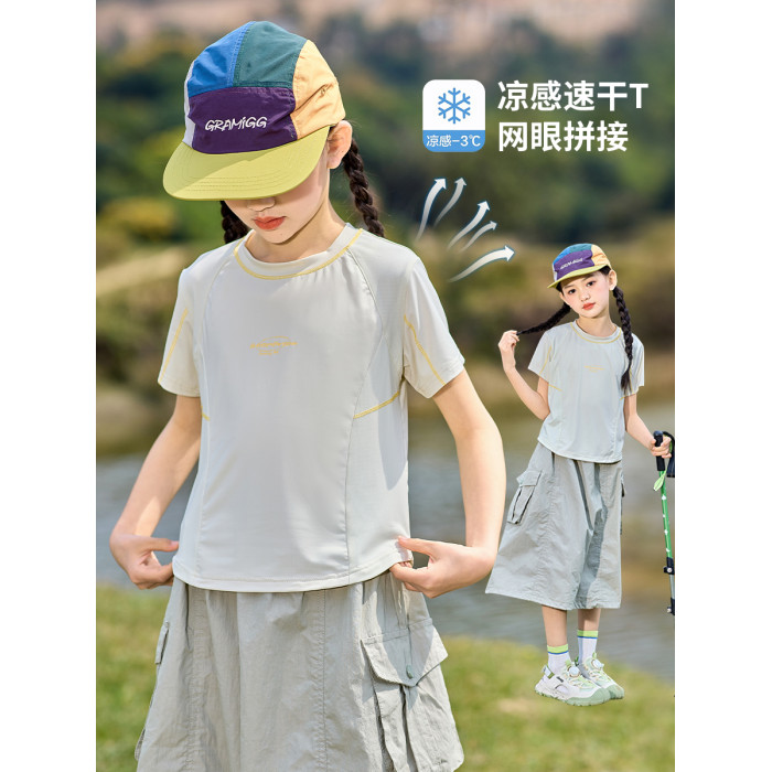 女童速乾短袖T恤夏季薄款兒童戶外運動上衣大童冰絲涼感透氣套裝