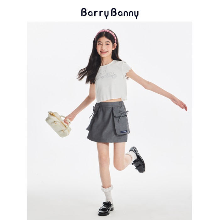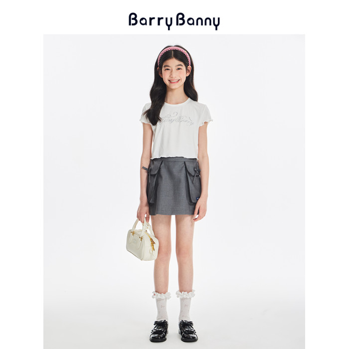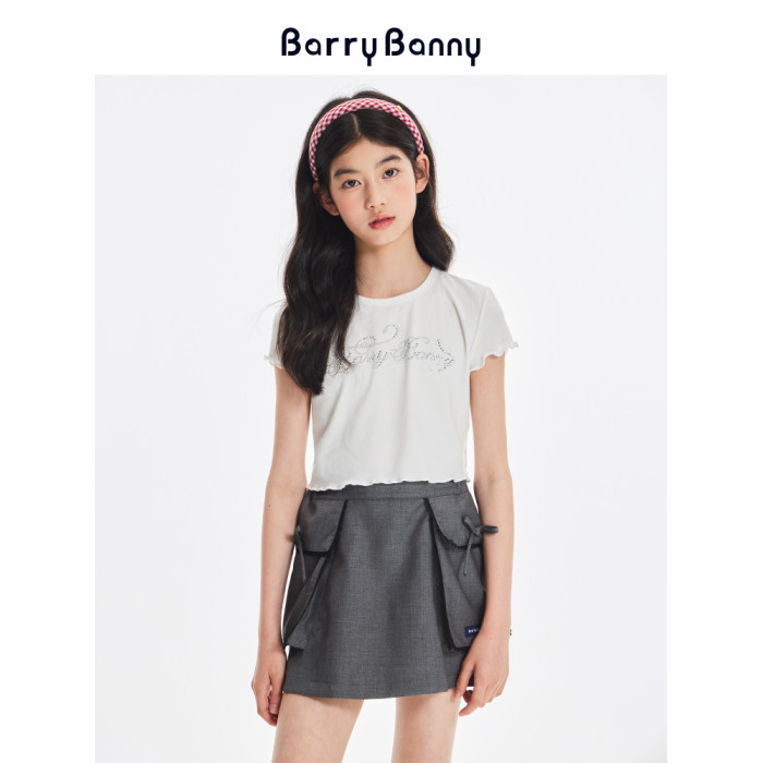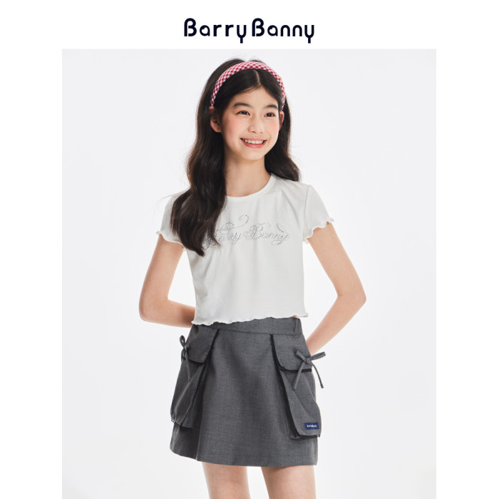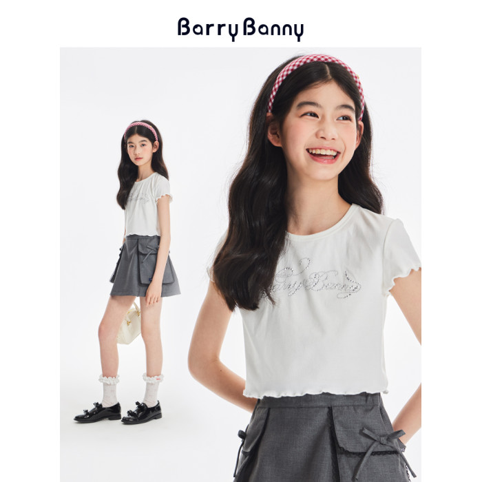 BarryBanny女童萊賽爾亮鑽短袖T恤夏季新款兒童洋氣百搭短款上衣