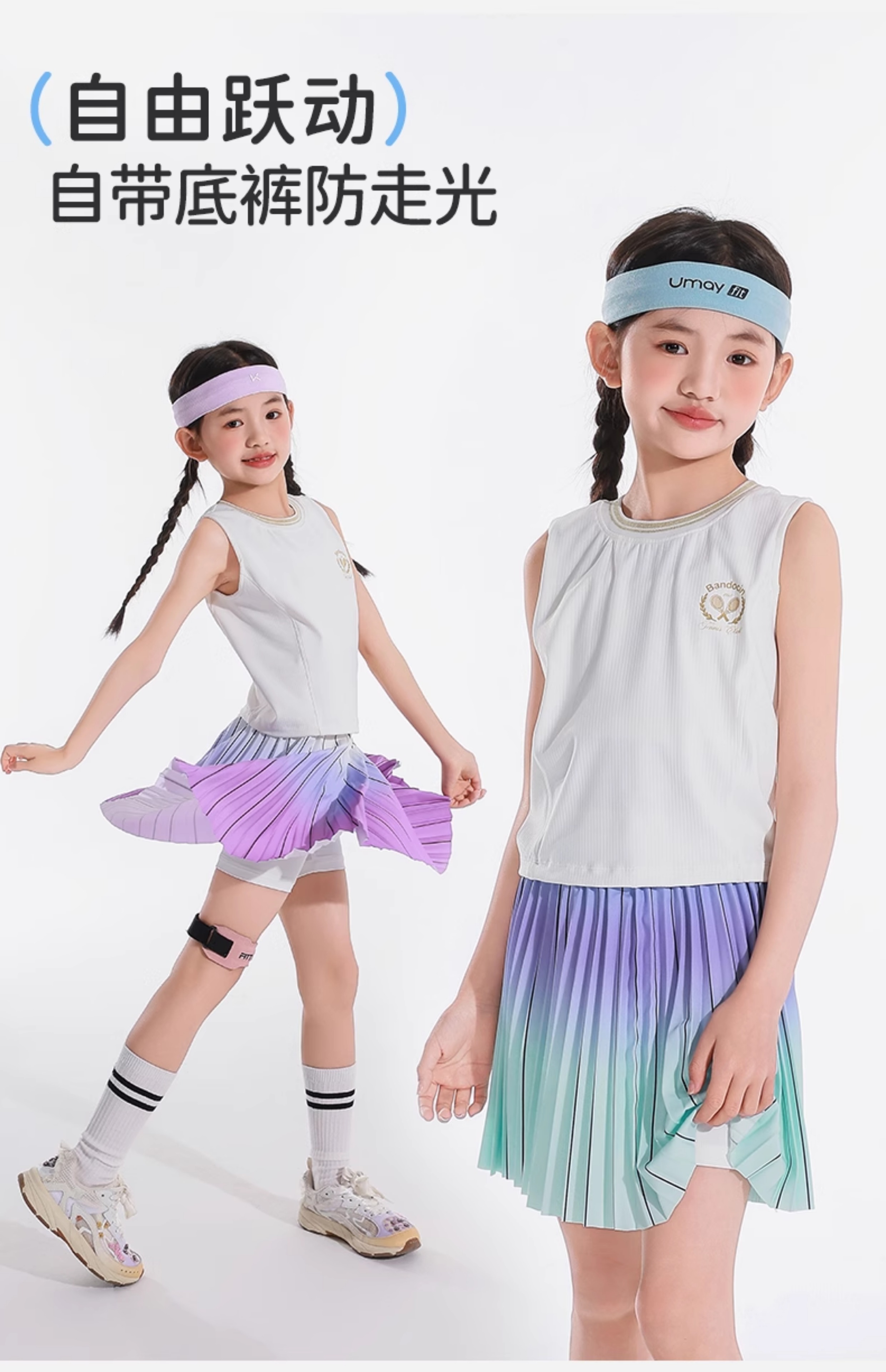半度閒女童夏季運動短裙洋氣中大童2025新款女孩夏裝防走光裙子潮