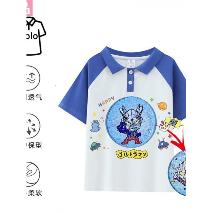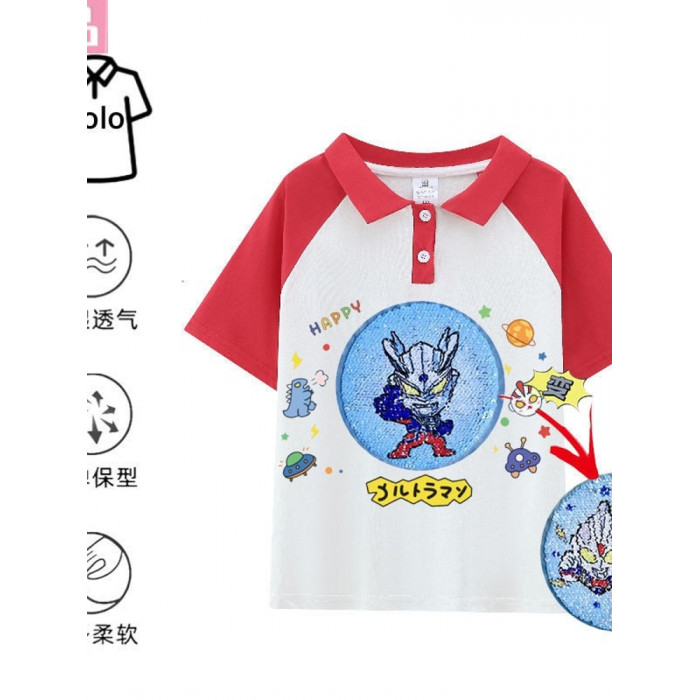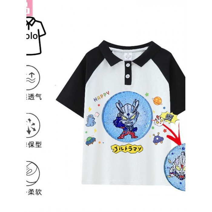 高品質POLO領噹季新品變臉純棉T恤網紅亮片兒童短袖男童撞色上衣