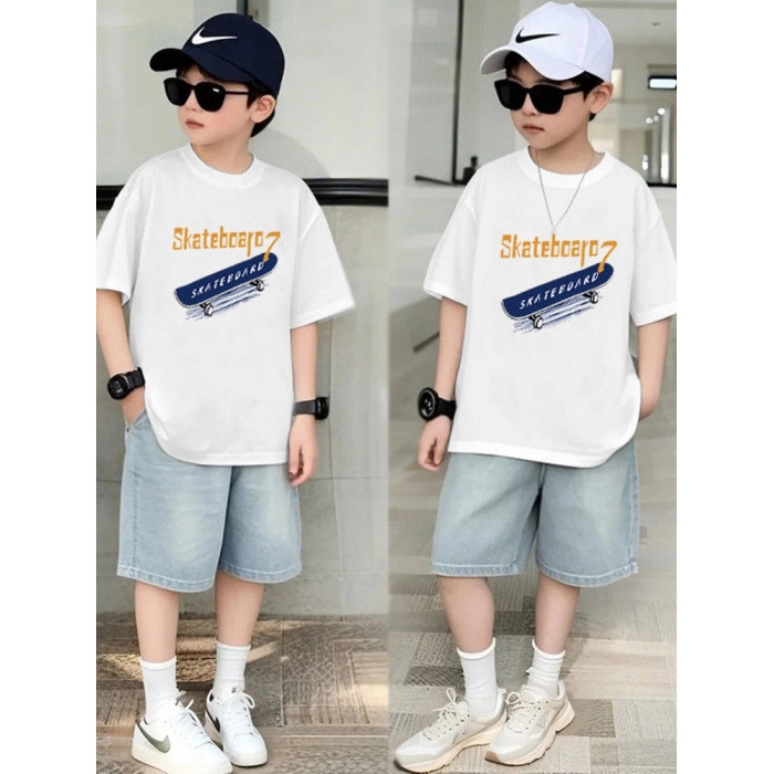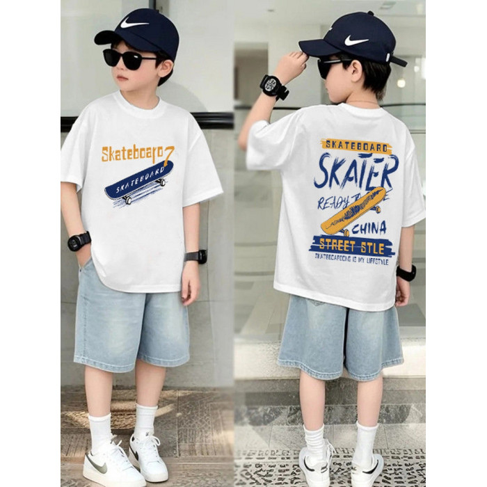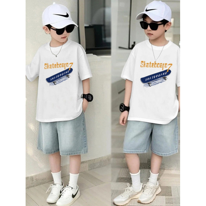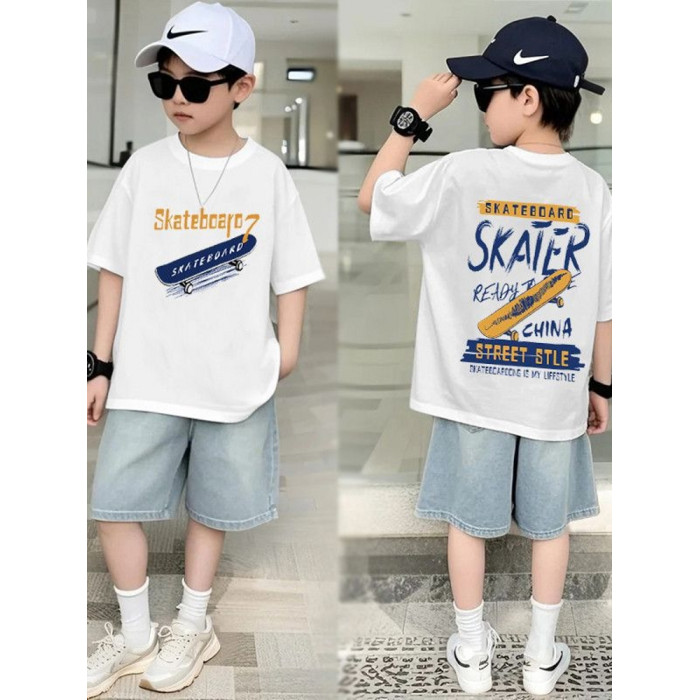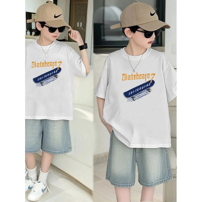 安哼安哼男童夏裝套裝新款中大童男孩寬松短袖夏季薄款牛仔短褲兩