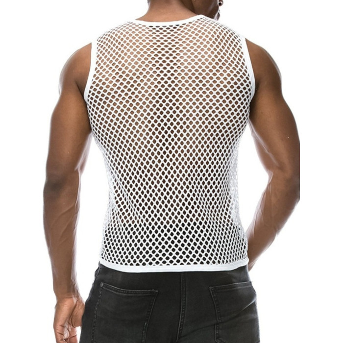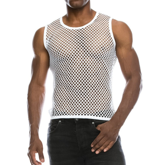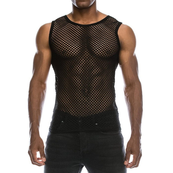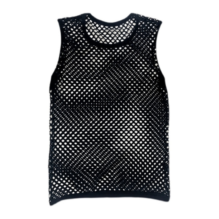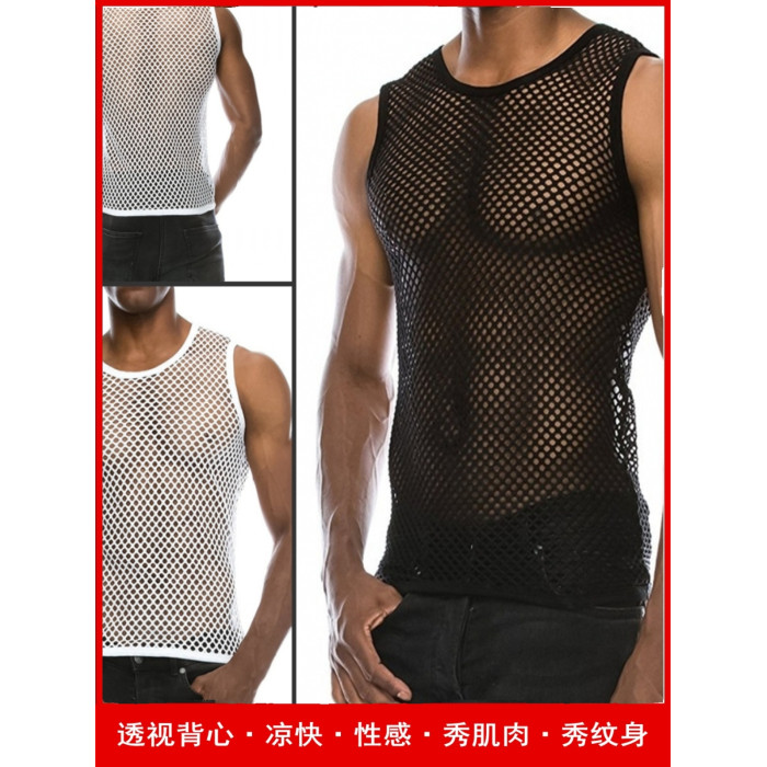 無袖背心透視鏤空網眼個性T網格潮男裝網洞演出服上衣漁網王嘉爾