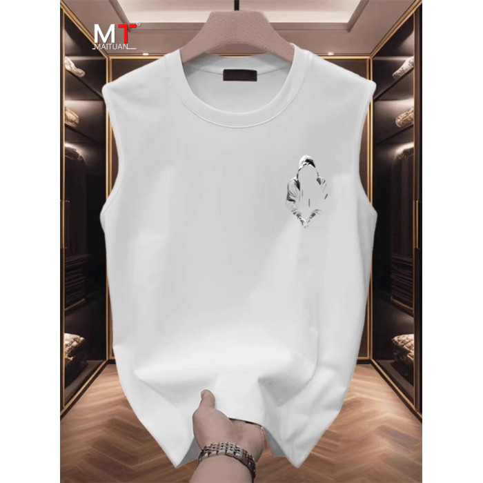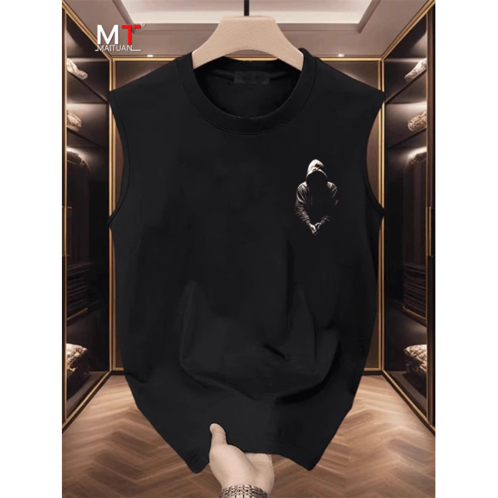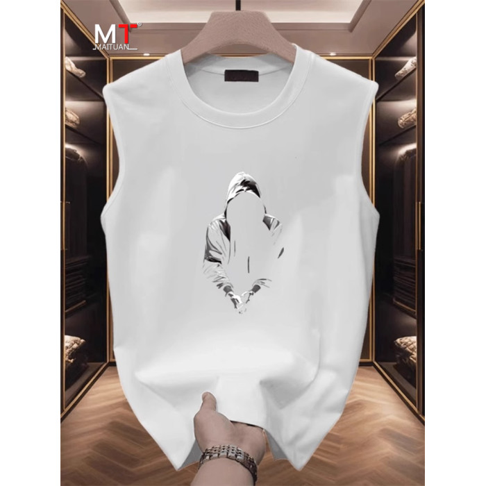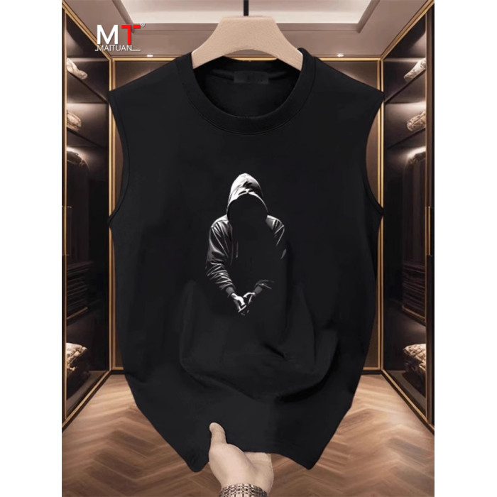 高級美式純棉背心男士無袖T恤2025新款夏季個性印花運動汗衫男款