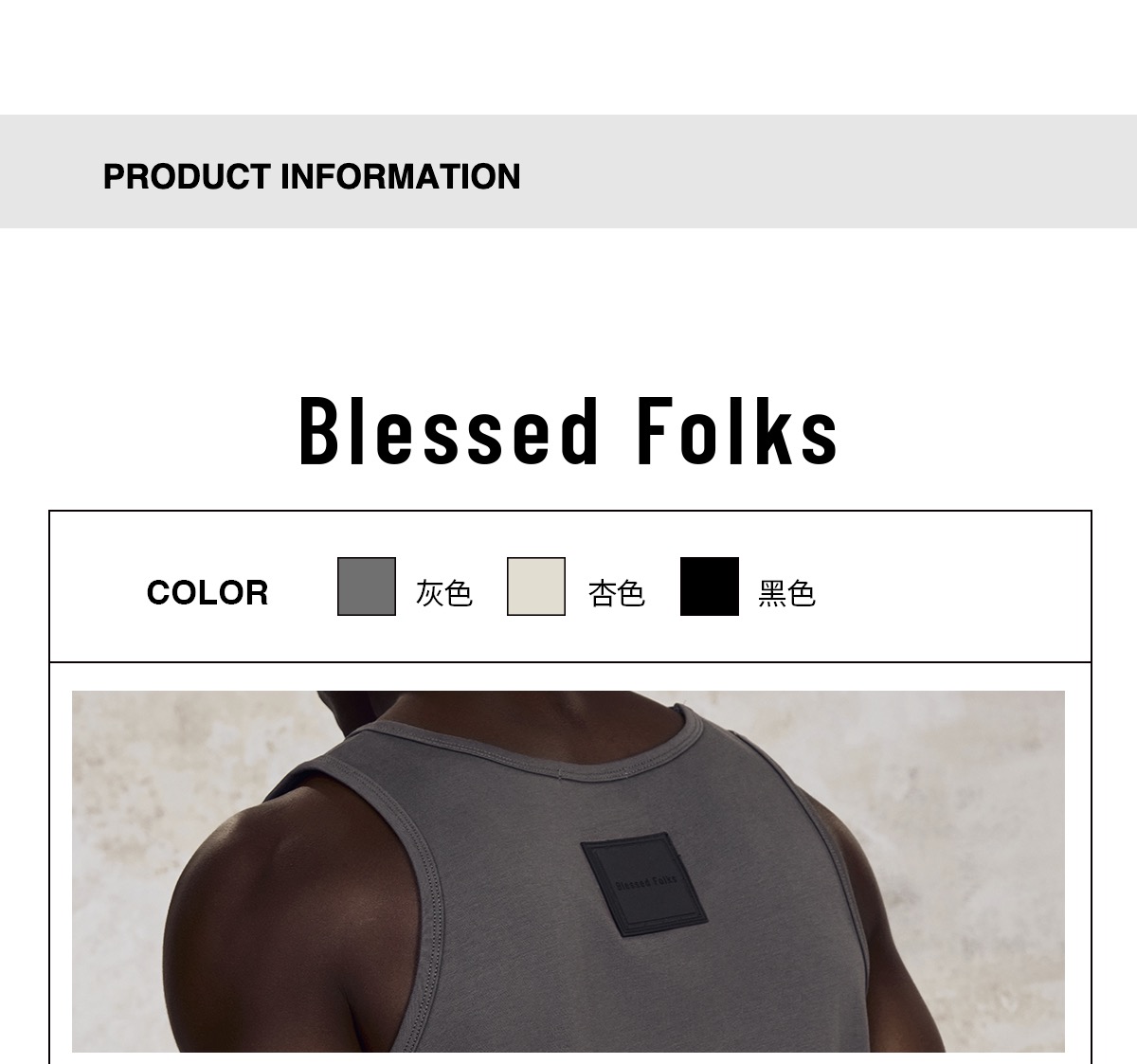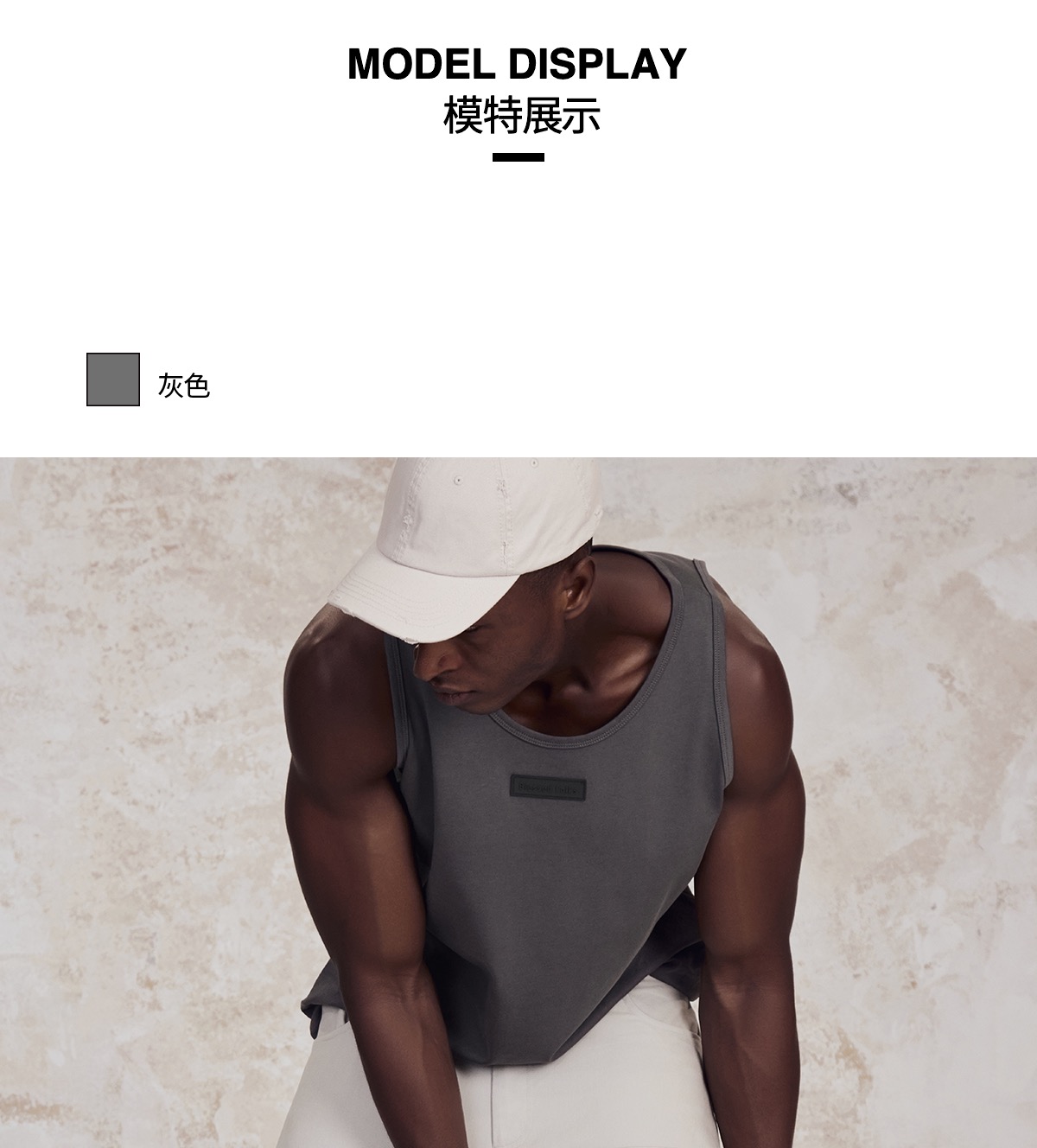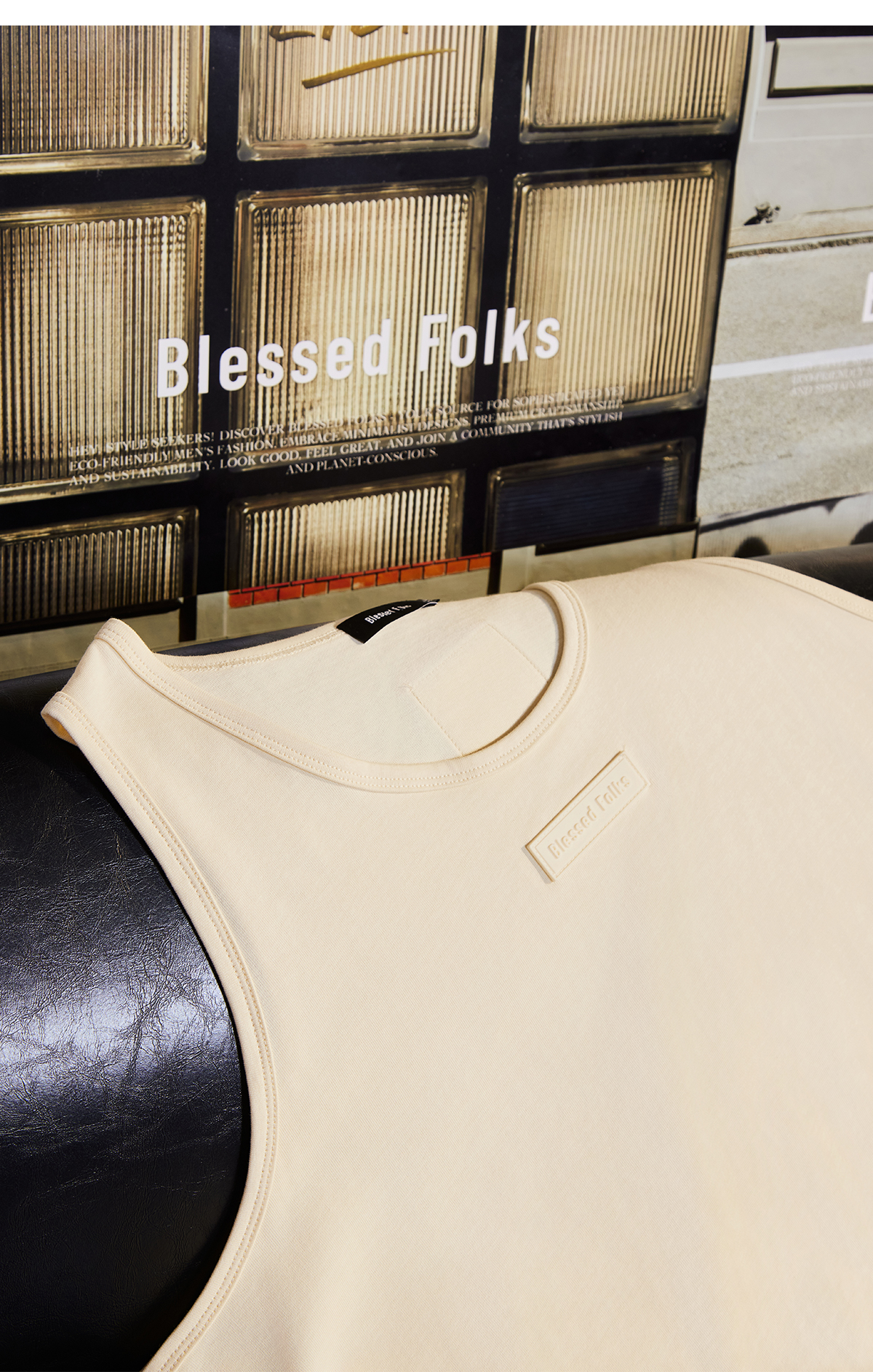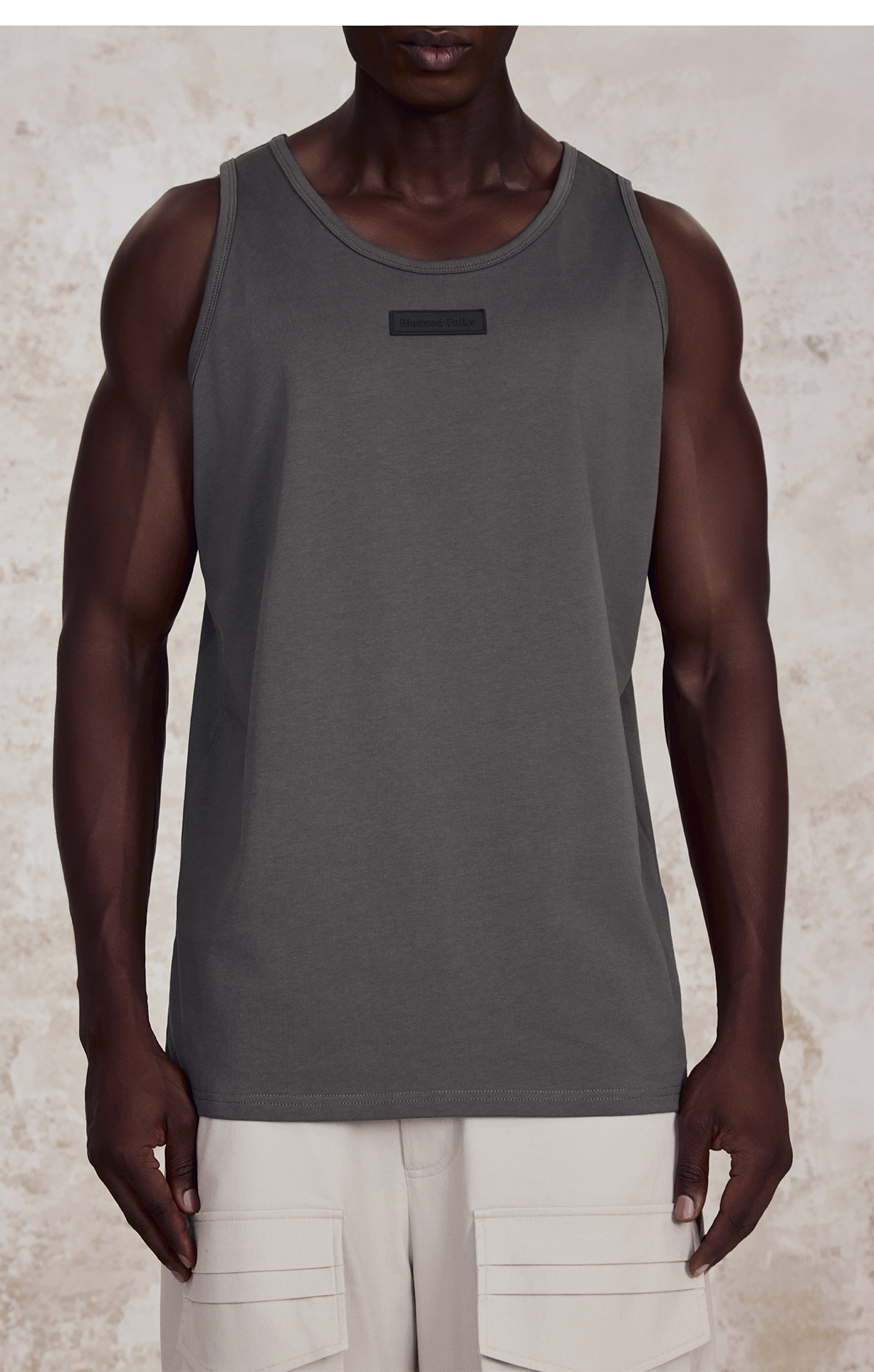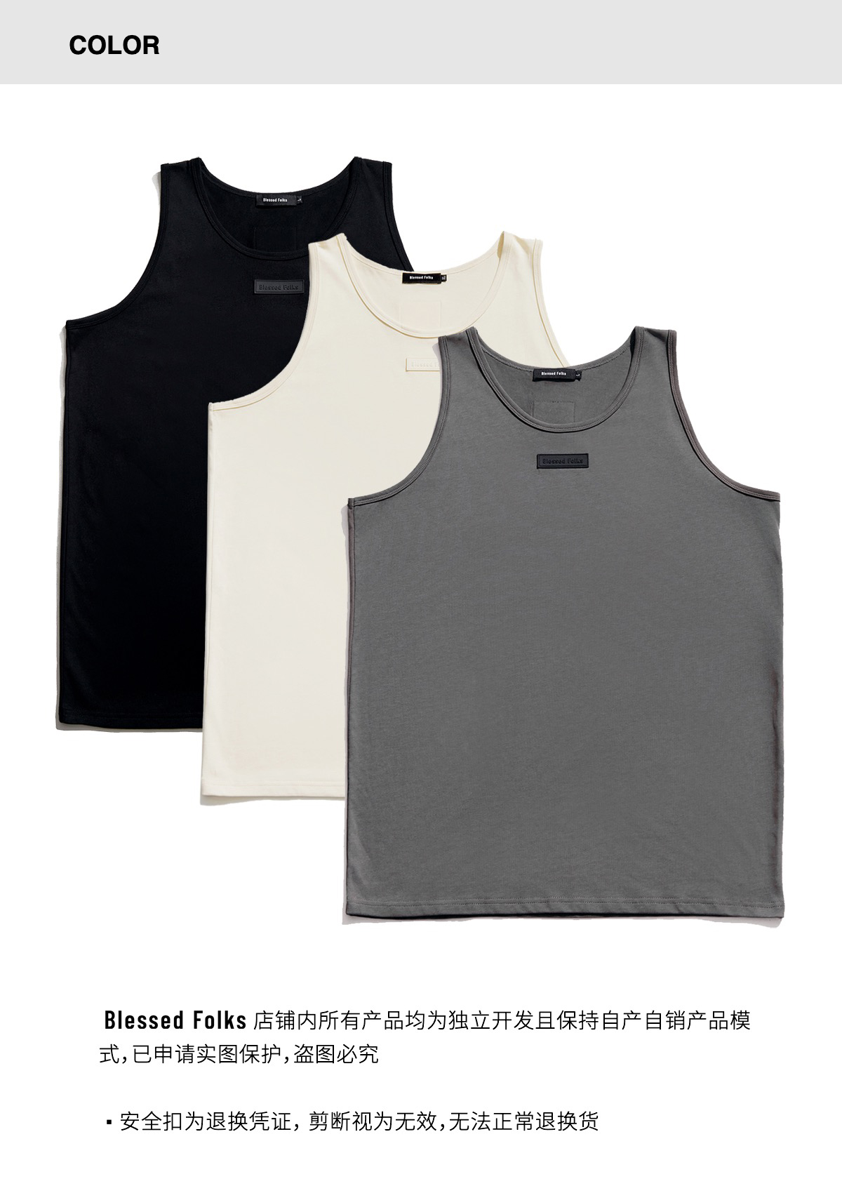 Blessed Folks夏季重磅純棉膠標美式圓領休閒健身運動背心