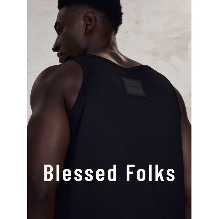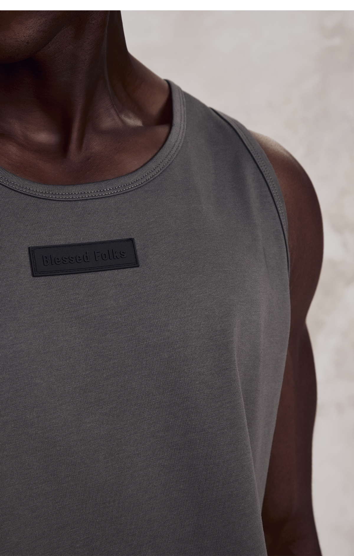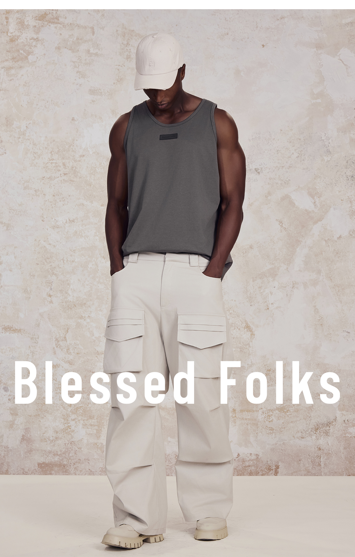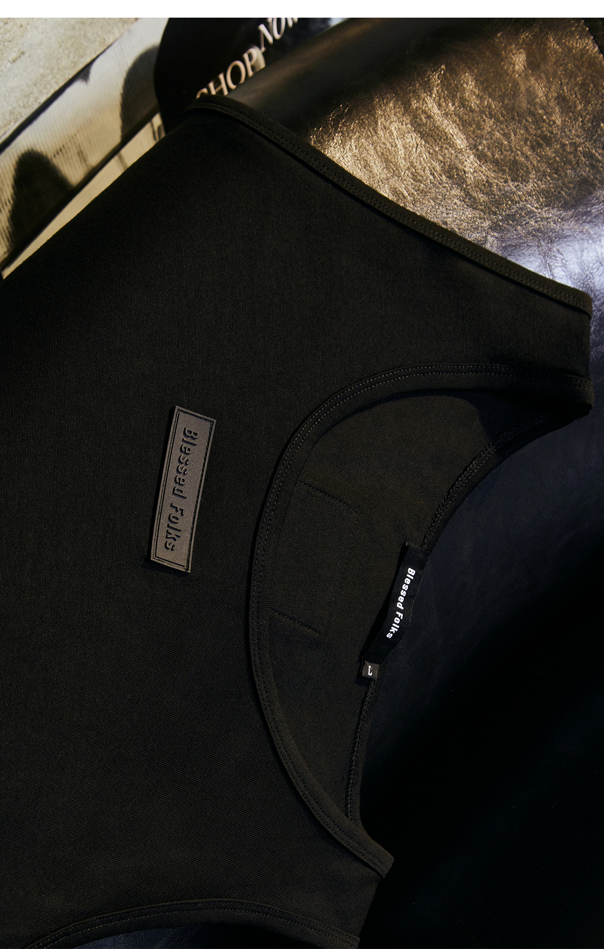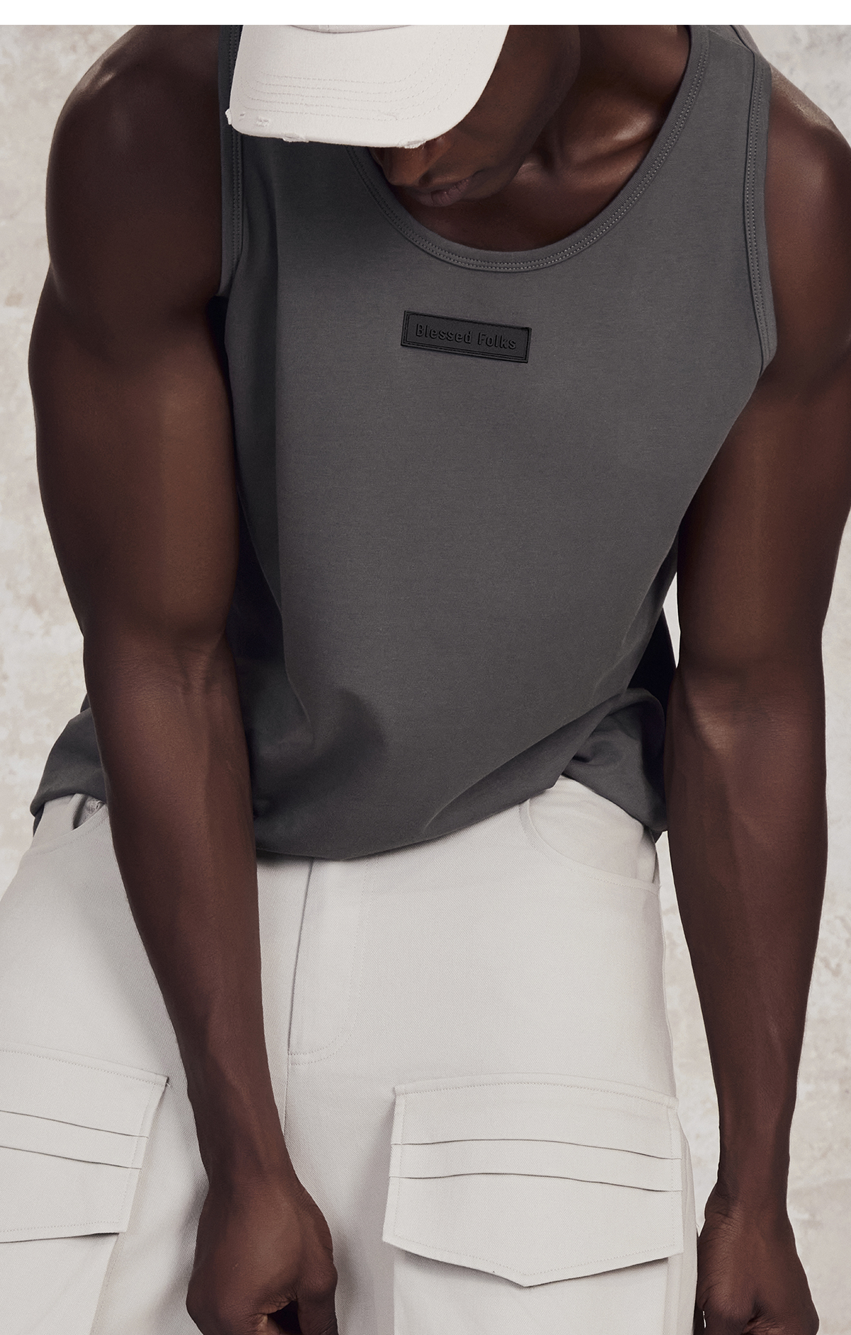 Blessed Folks夏季重磅純棉膠標美式圓領休閒健身運動背心