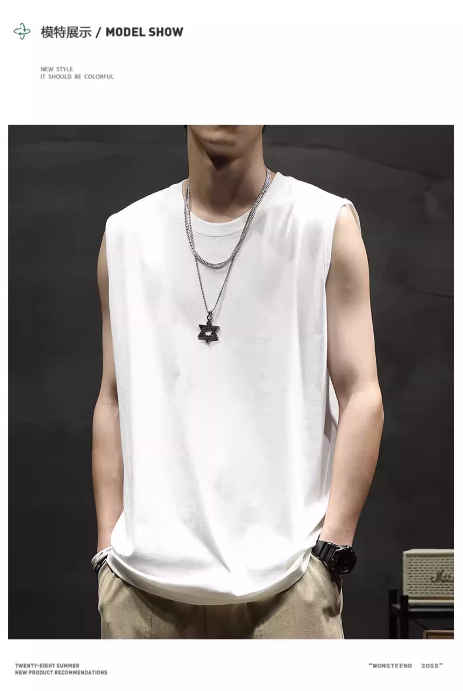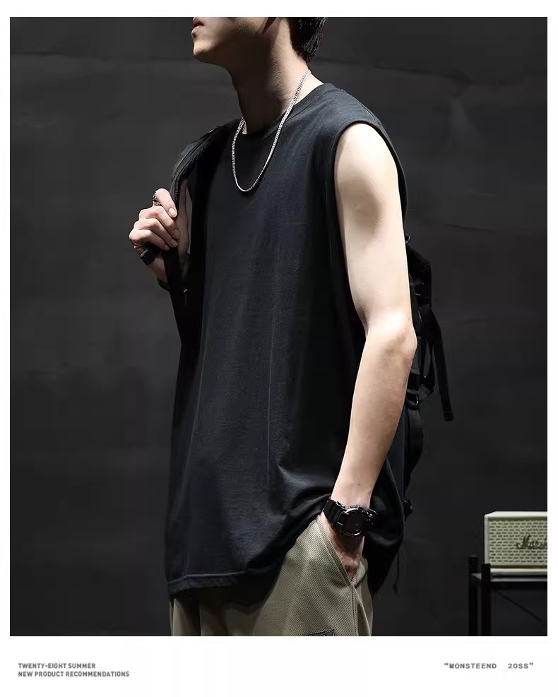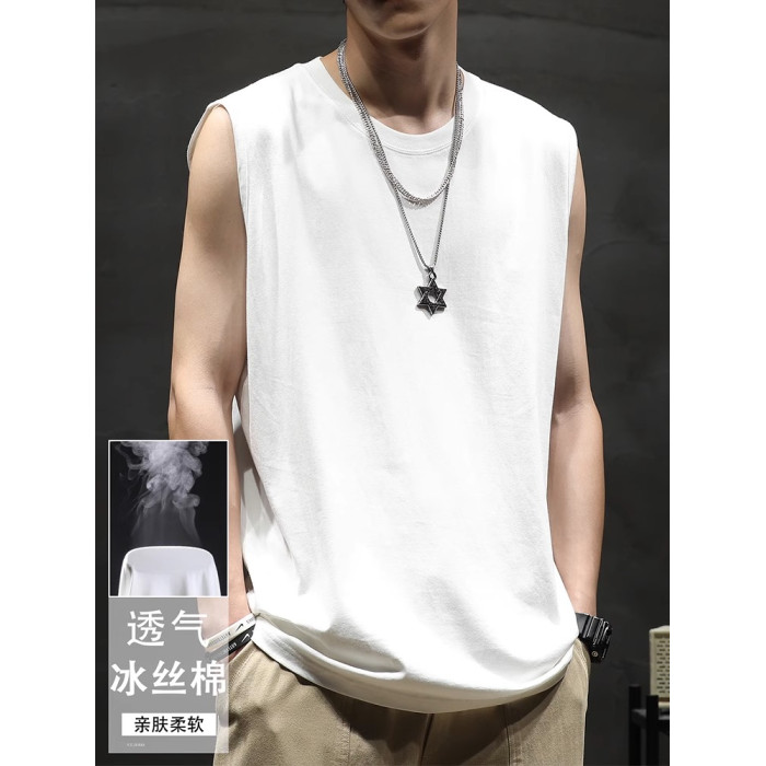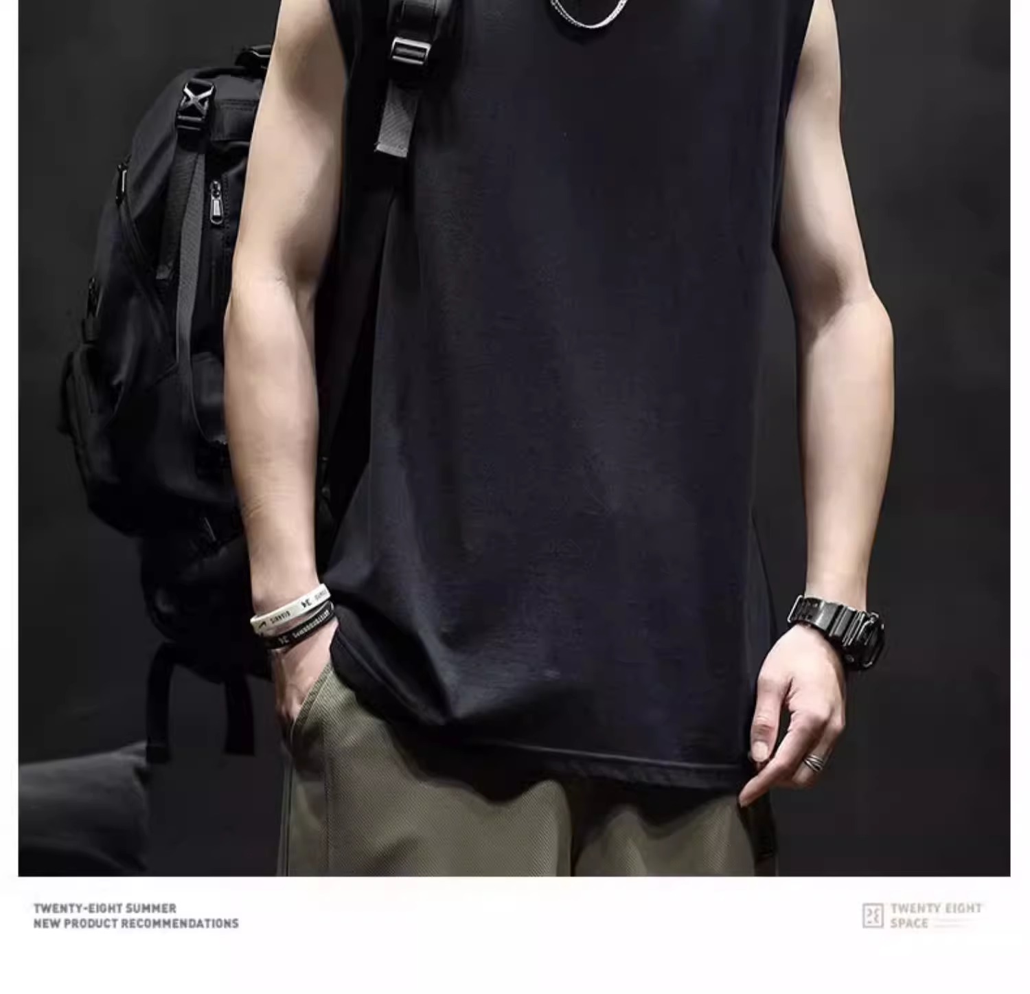 倉石一樹冰絲棉無袖t恤男健身速乾純色寬松休閒薄款坎肩背心夏季