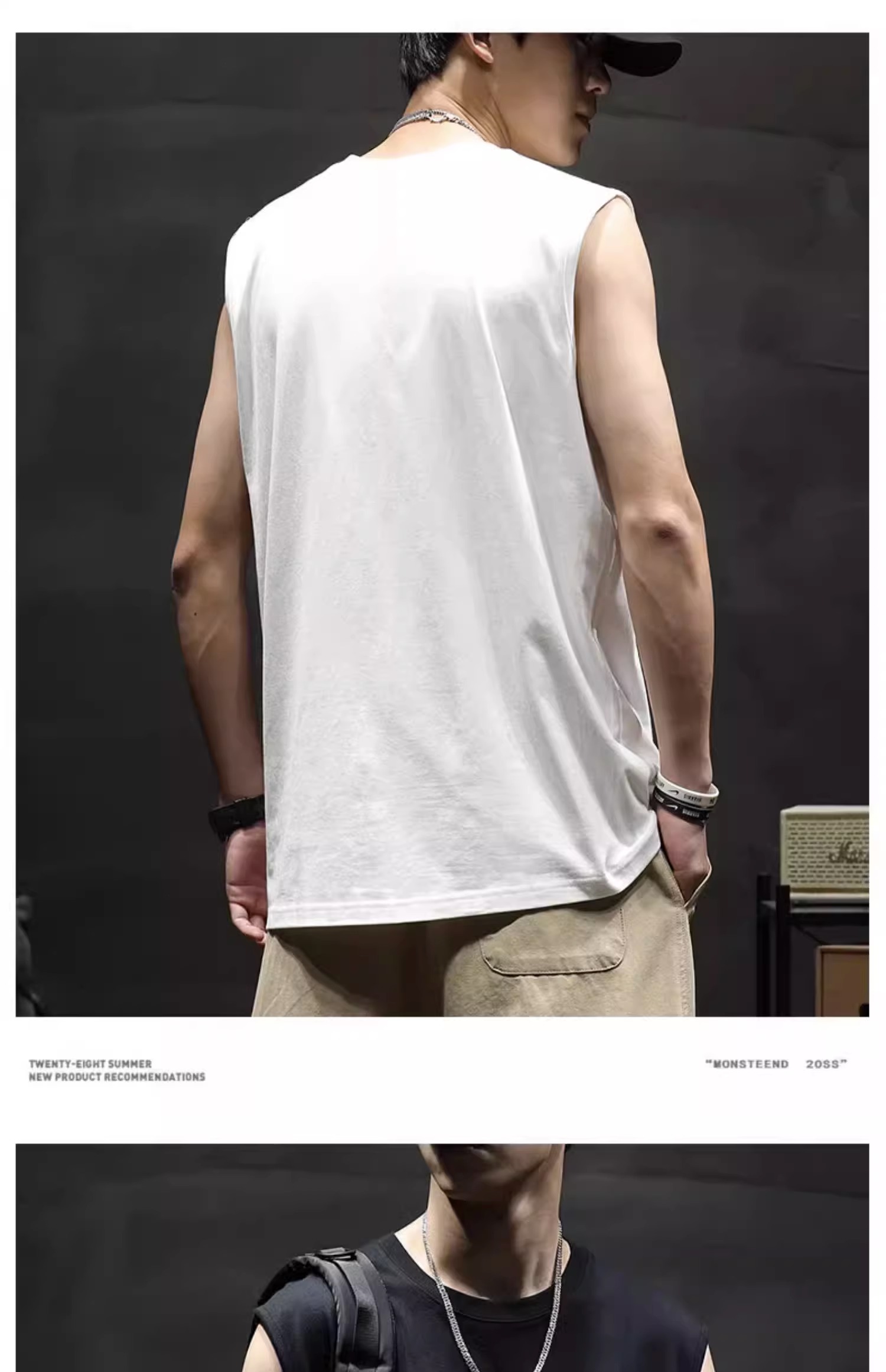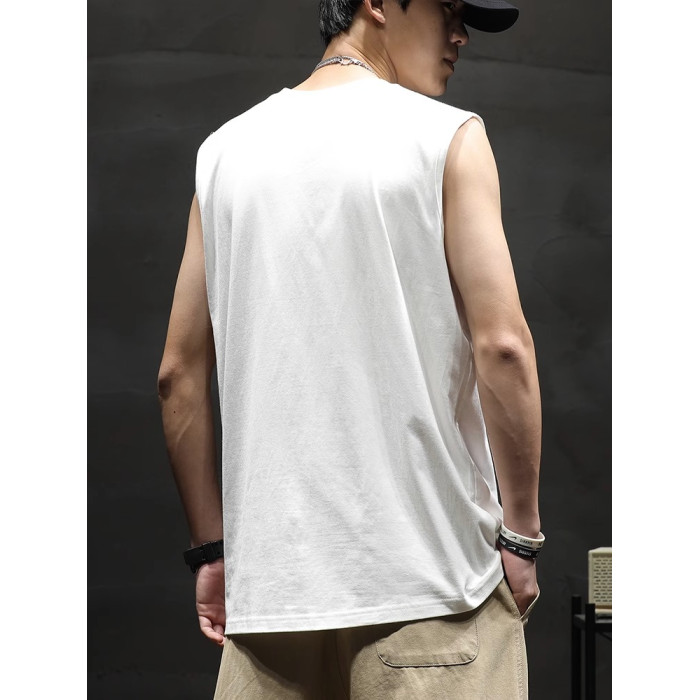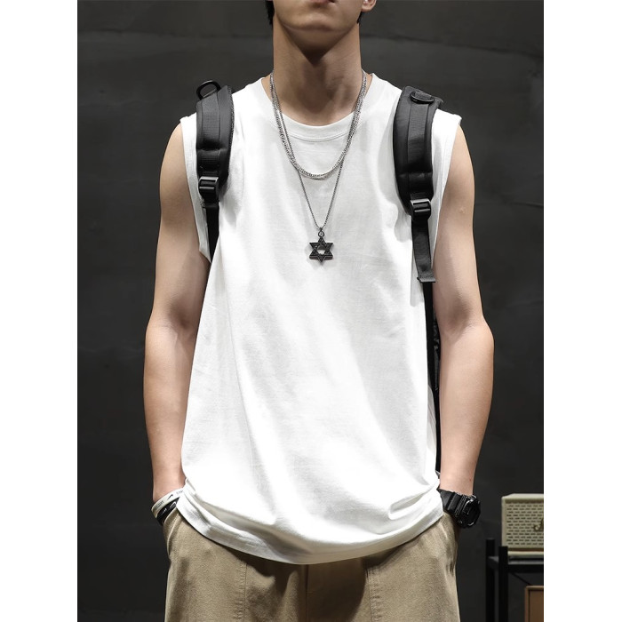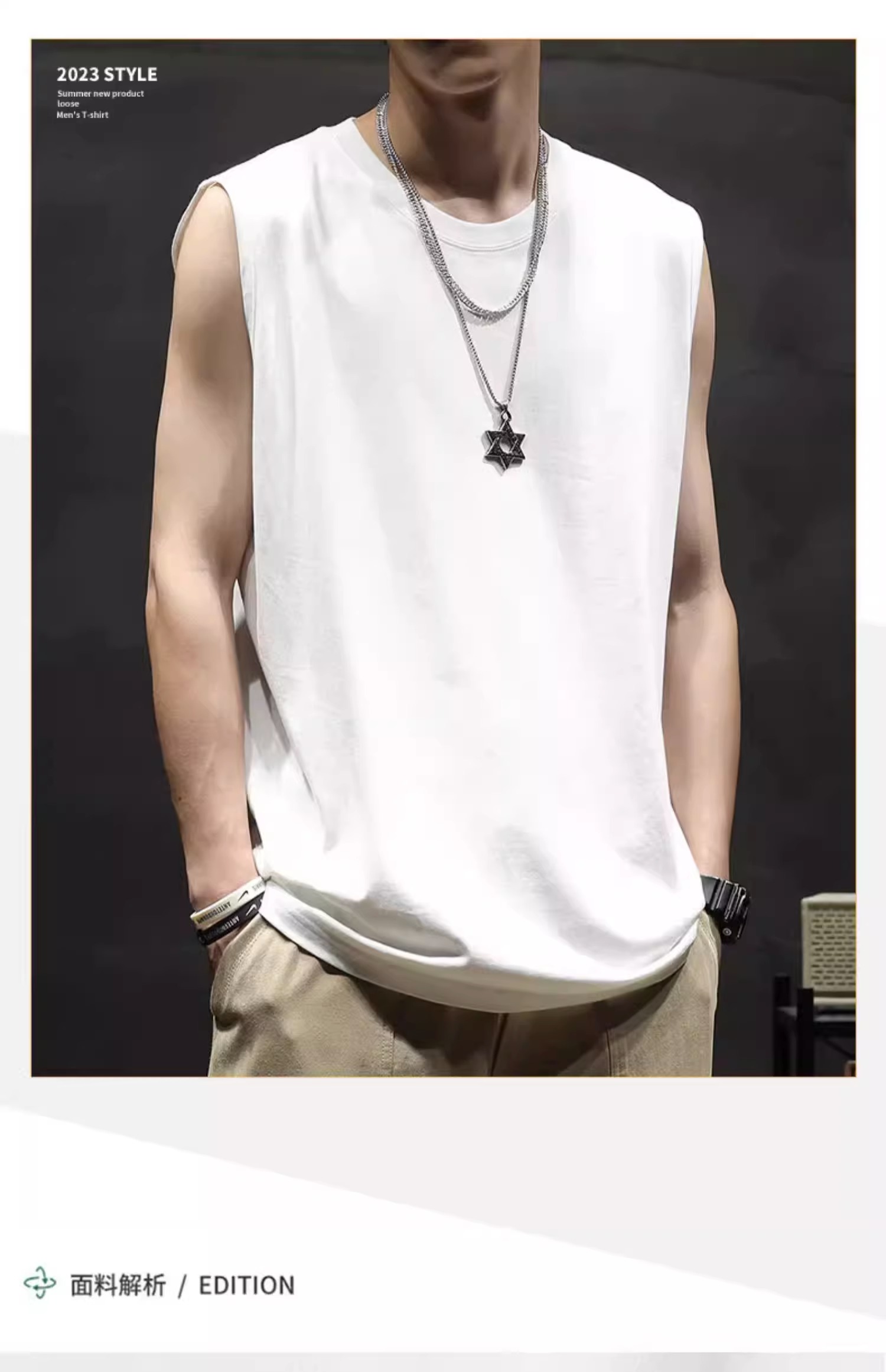 倉石一樹冰絲棉無袖t恤男健身速乾純色寬松休閒薄款坎肩背心夏季