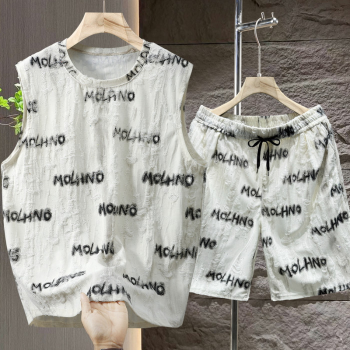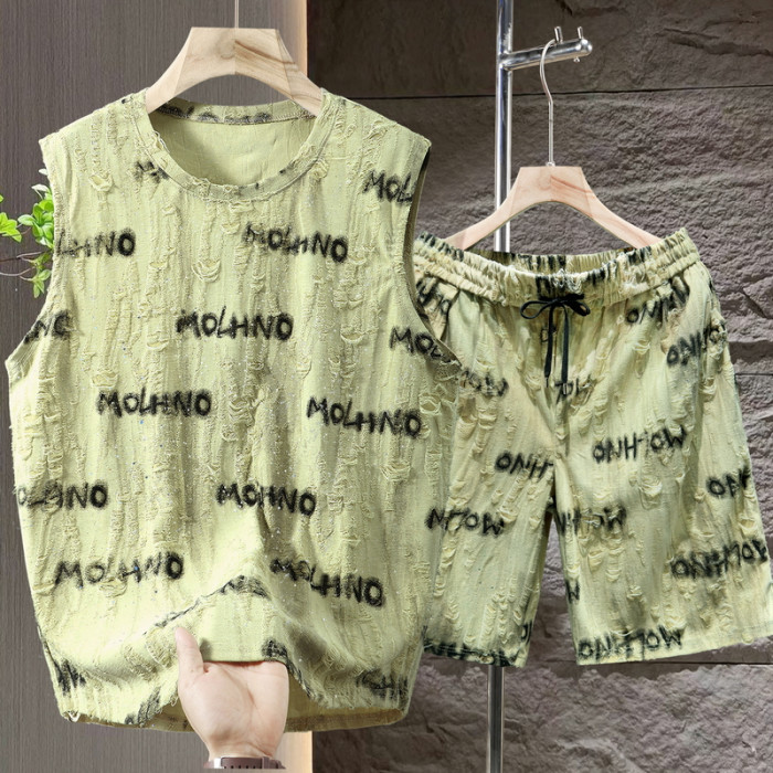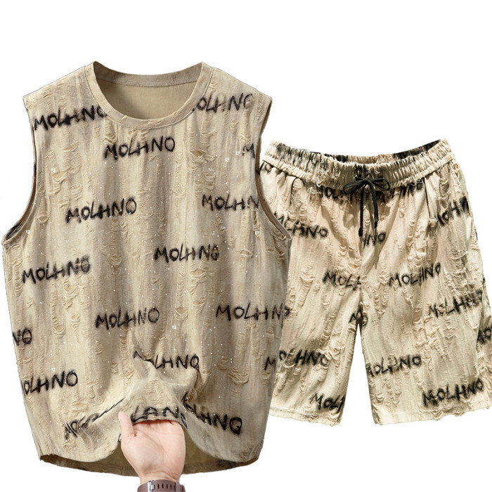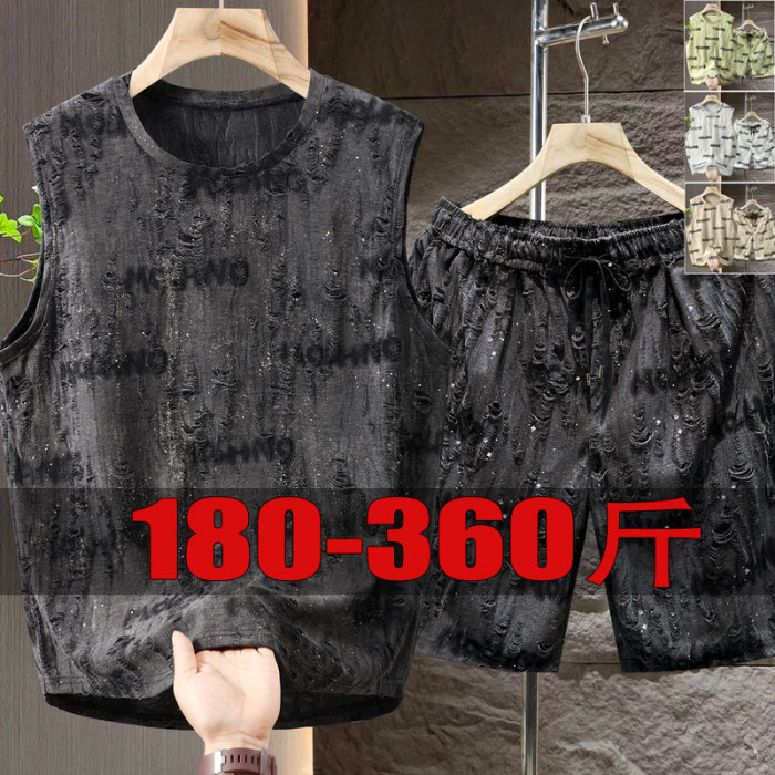 200斤破洞背心無袖男t恤2025新款寬松加肥加大oversize外穿兩件套