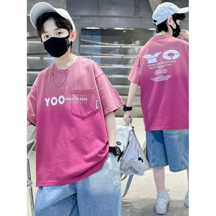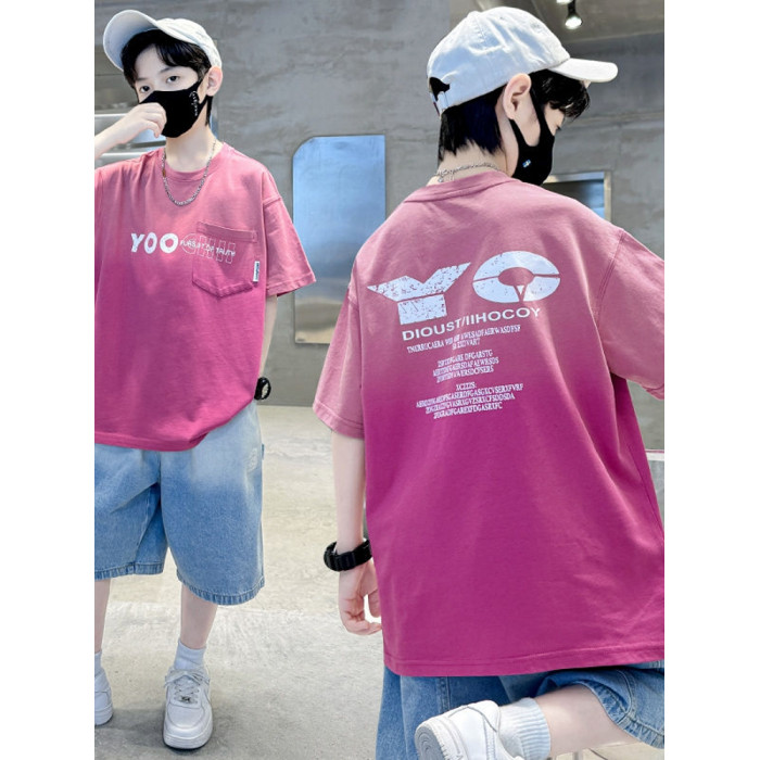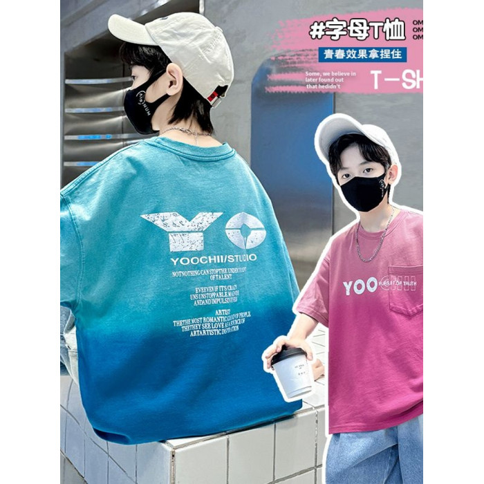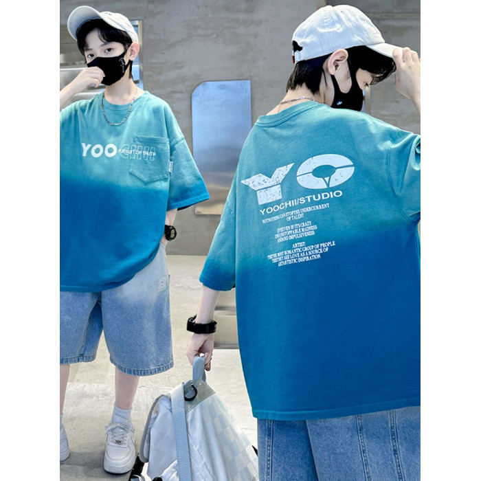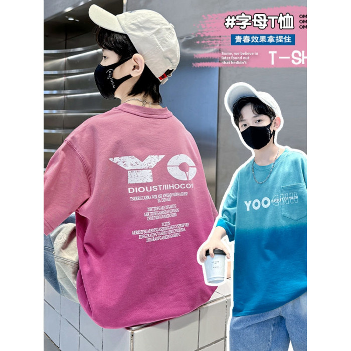 安哼安哼男童t恤短袖2025新款夏季大兒童裝紥染漸變純棉上衣薄款