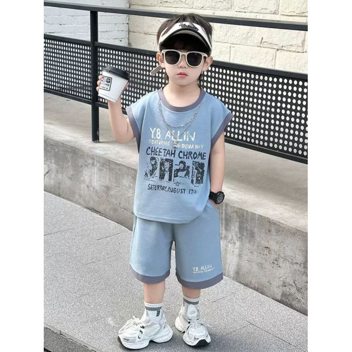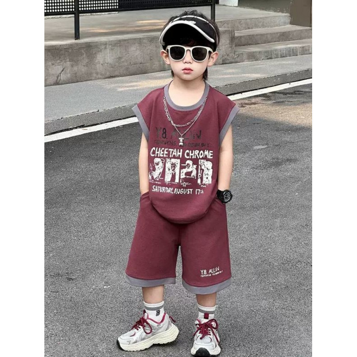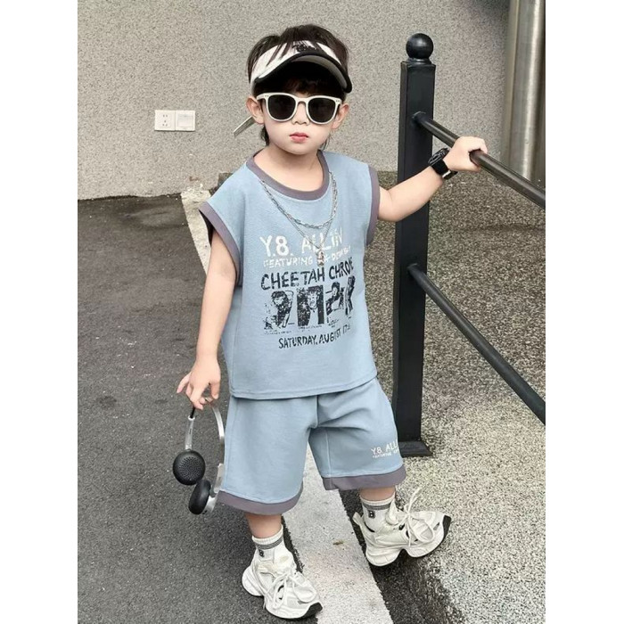 安哼安哼男童夏套裝兒童背心2025新款帥氣時髦韓範痞帥小男童夏裝