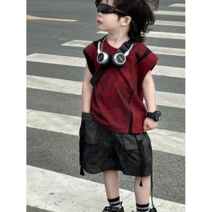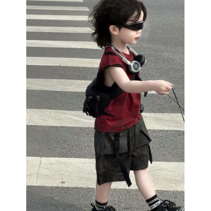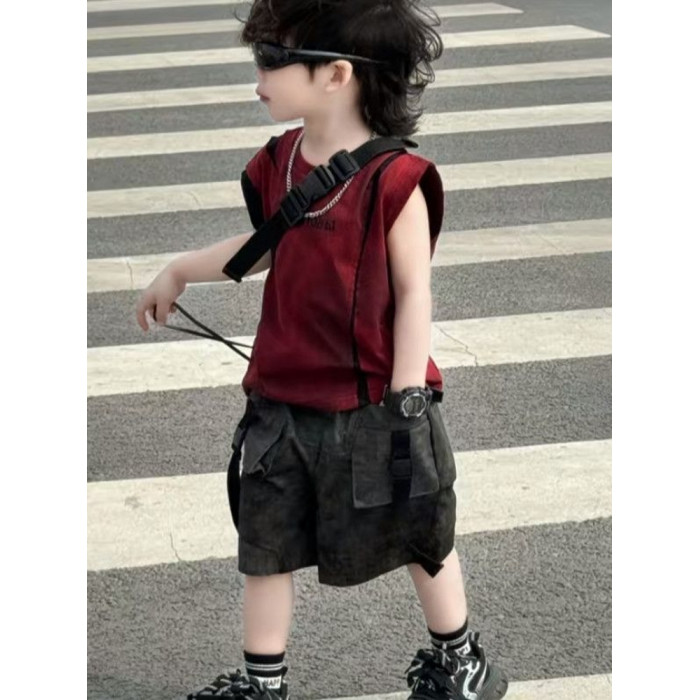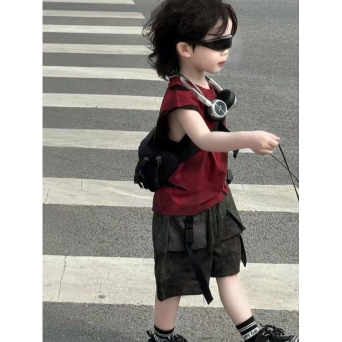 安哼安哼男童清涼無袖夏季紥染背心套裝新款兒童2025韓版帥氣短褲