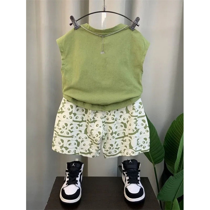 安哼安哼男童無袖短褲卡通套裝兒童夏季新款男寶帥氣潮酷兩件套背