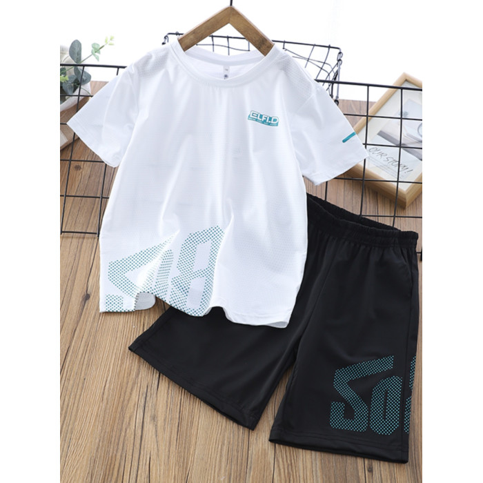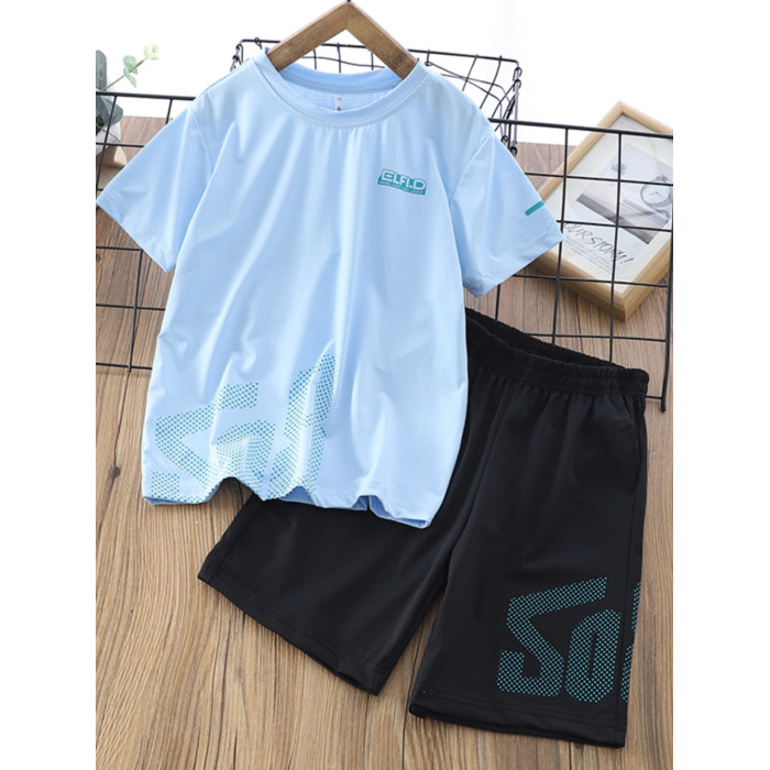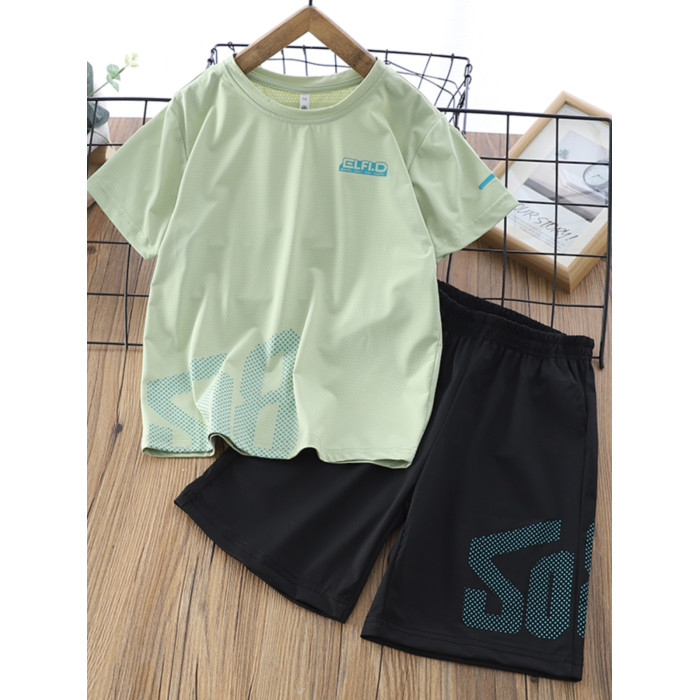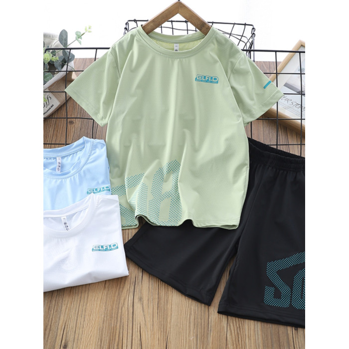 男童冰絲速乾短袖短褲套裝夏季2024新款網眼兒童中大童運動兩件套