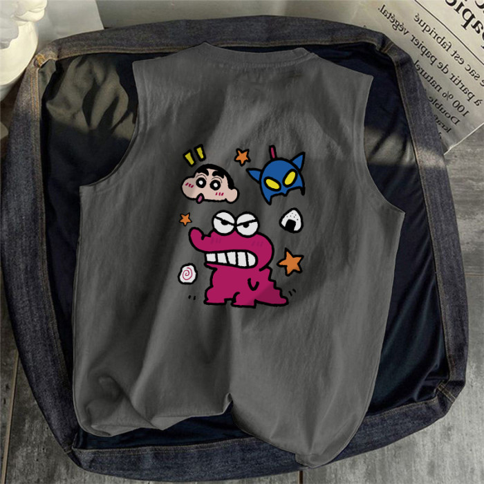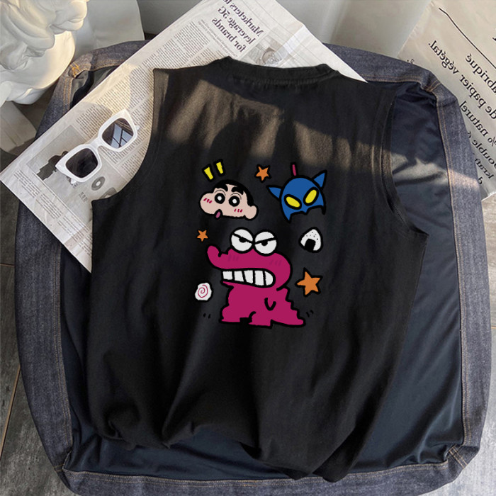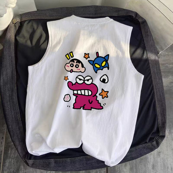 夏季ins潮流小新卡通潮牌無袖t恤寬松休閒百搭透氣220g純棉背心男