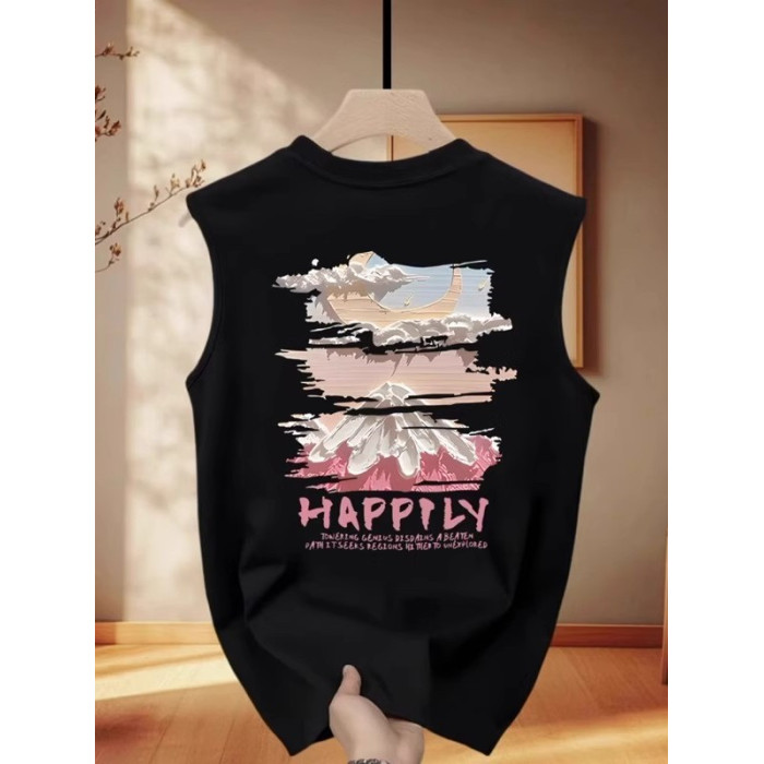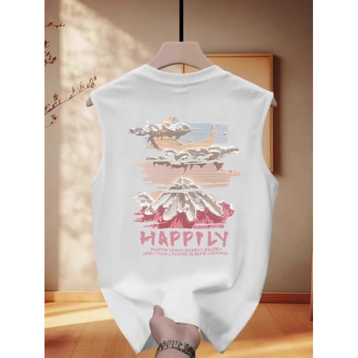 倉石一樹潮牌雪山印花無袖t恤男夏季新款痞帥坎肩背心寬松上衣