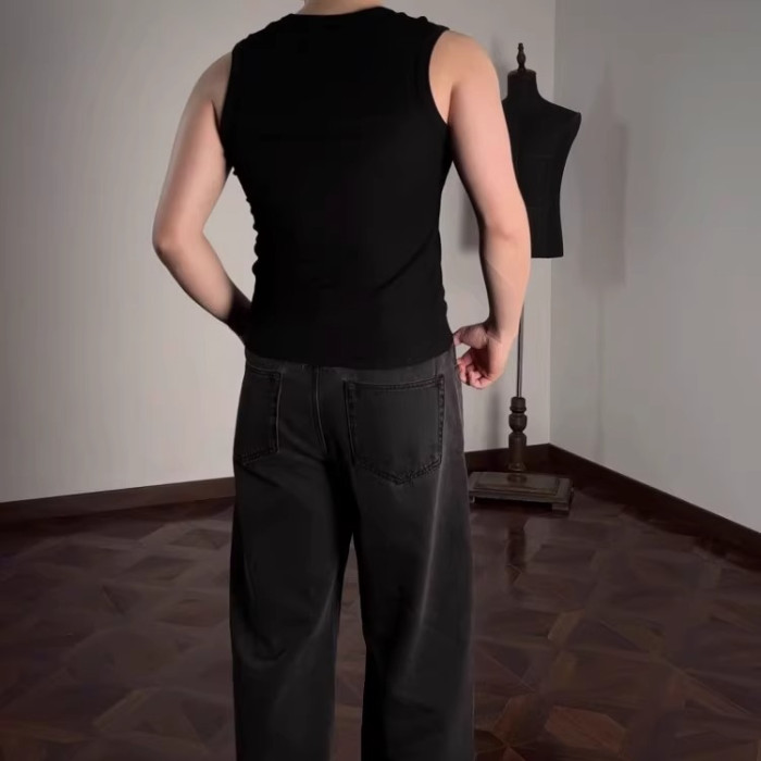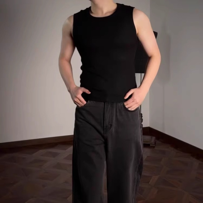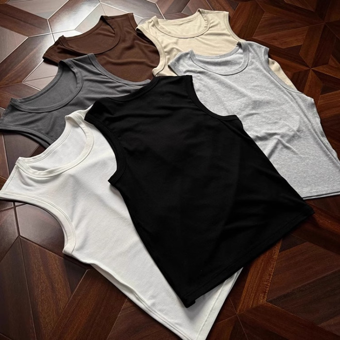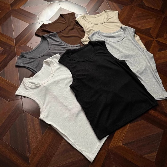 立體剪裁無袖健身運動打底柔軟糯螺紋坑條小領口收腰修身彈力背心