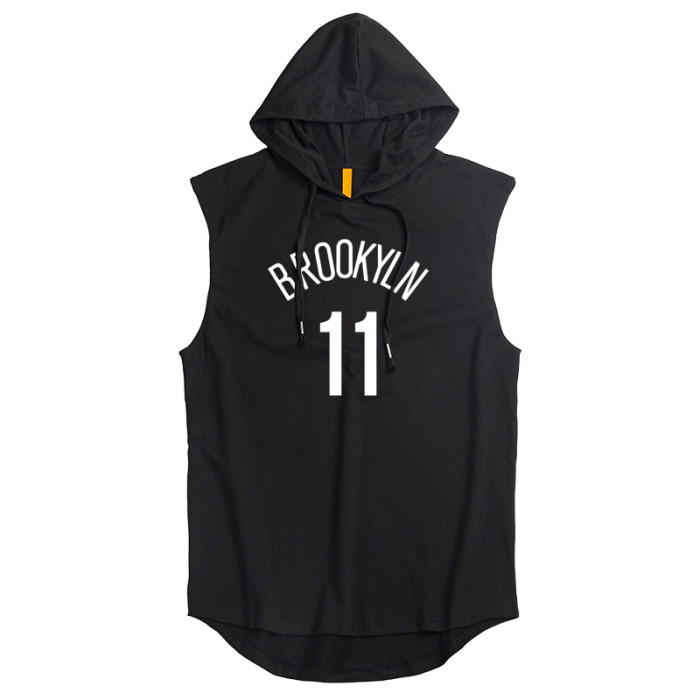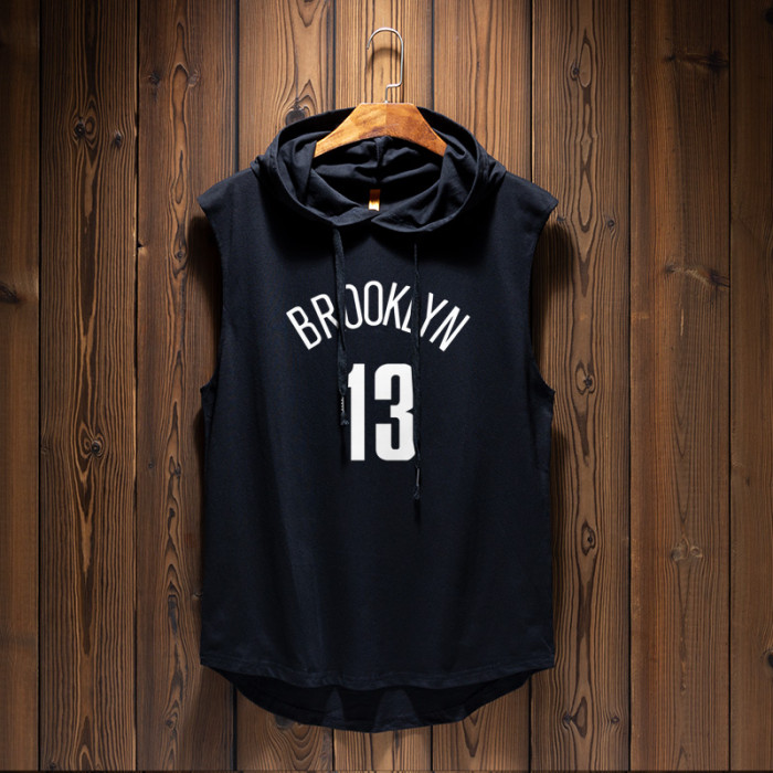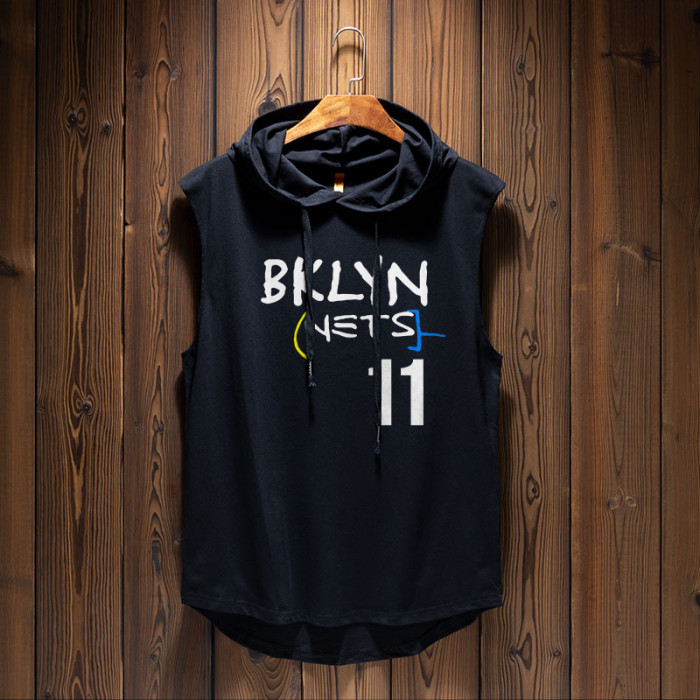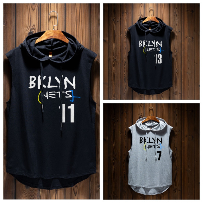 籃網歐文帶帽運動連帽背心籃球服坎肩帽衫男無袖衛衣夏季帶帽子