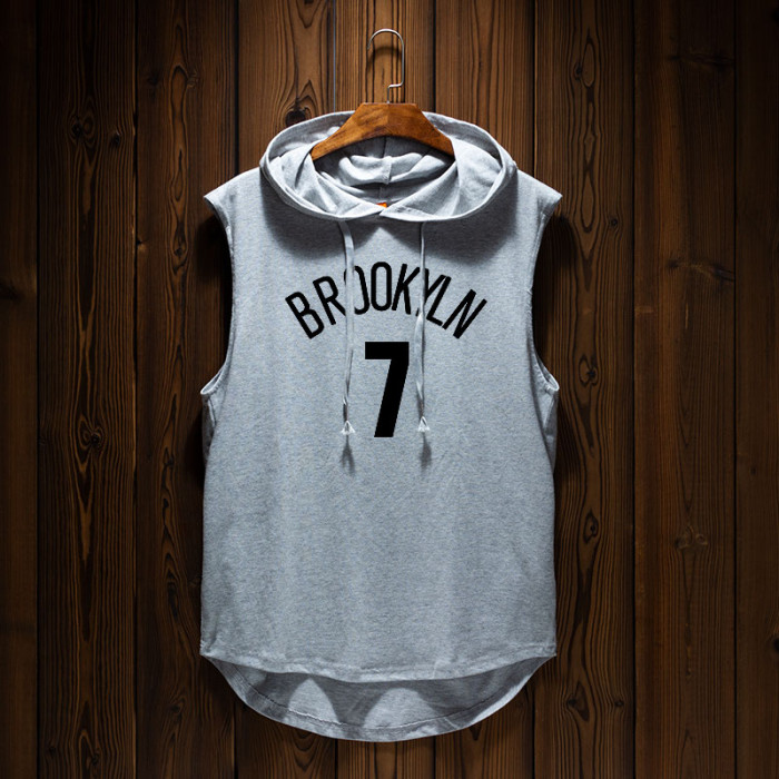 灰色【籃網杜蘭特7 連帽背心】 純棉(黑印花)