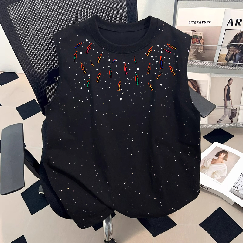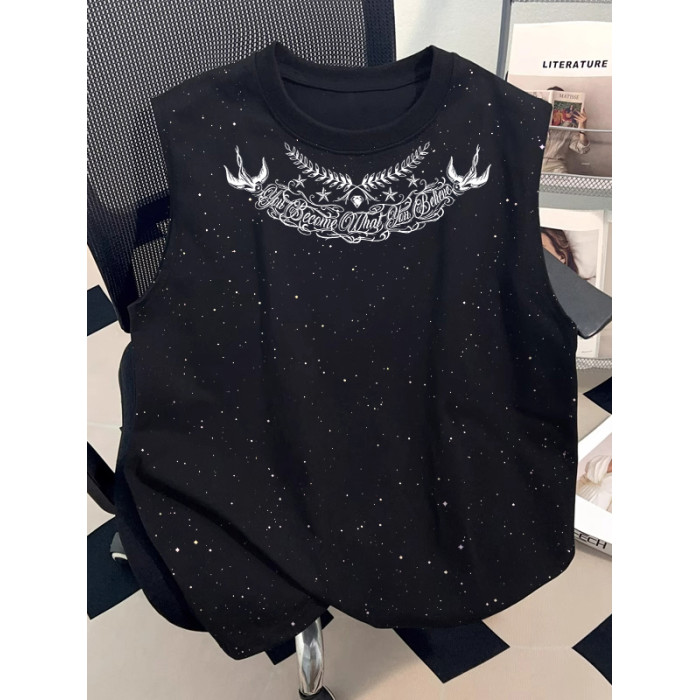 美式潮牌滿天星背心男女款夏季寬松休閒純棉情侶無袖t恤坎肩上衣