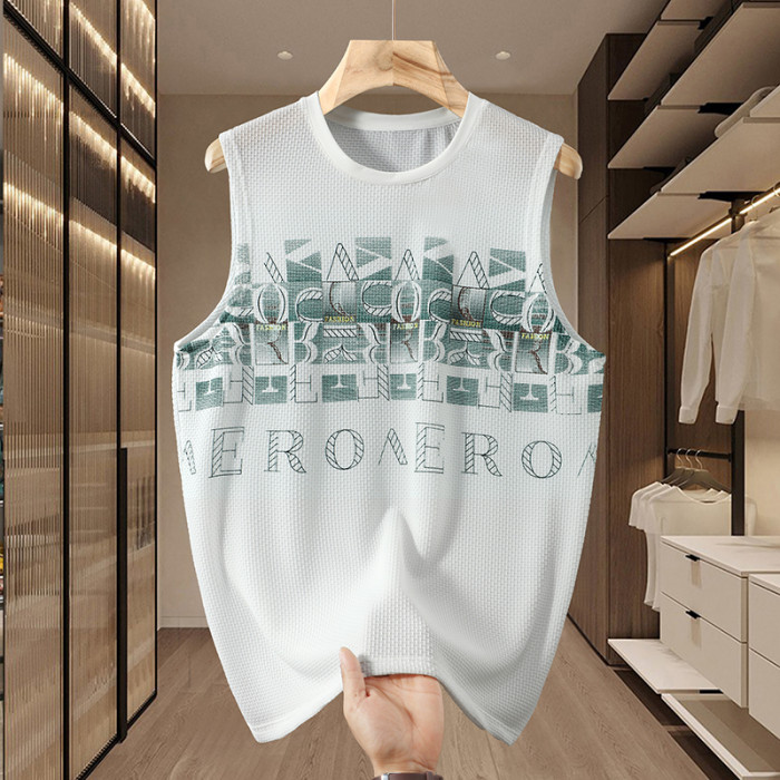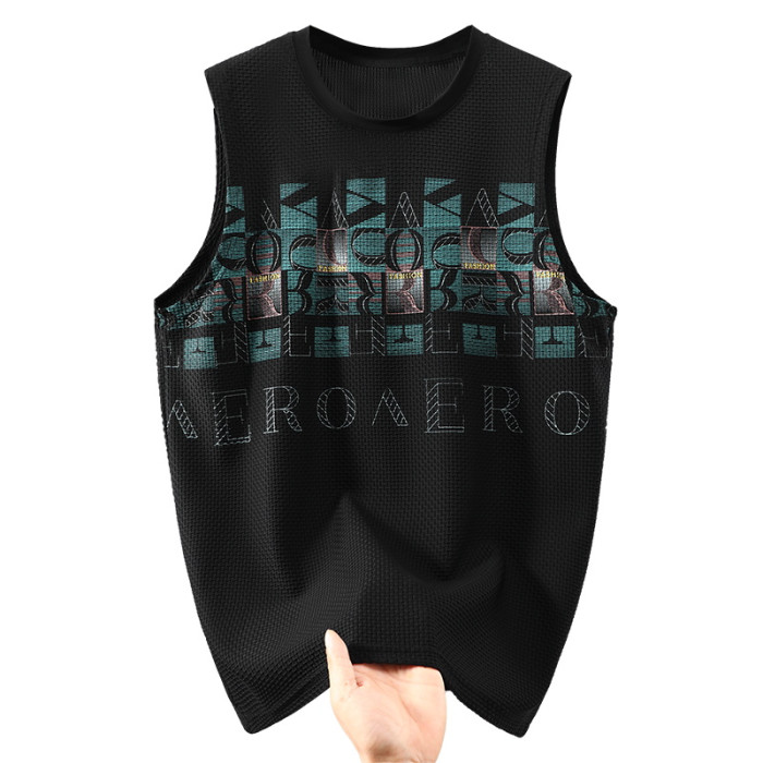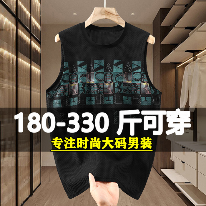 加肥加大冰絲背心男寬松休閒特大碼潮流胖子300斤速乾印花無袖T恤