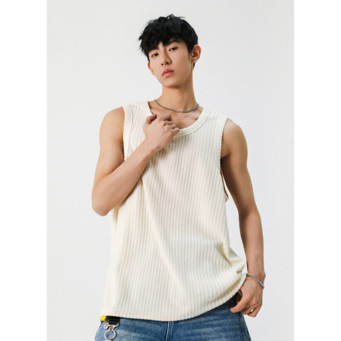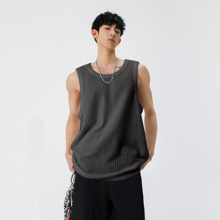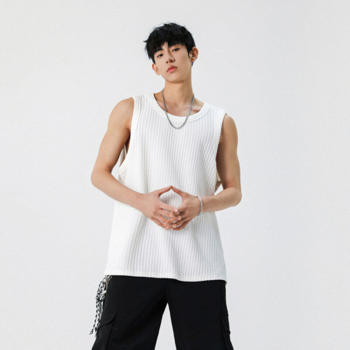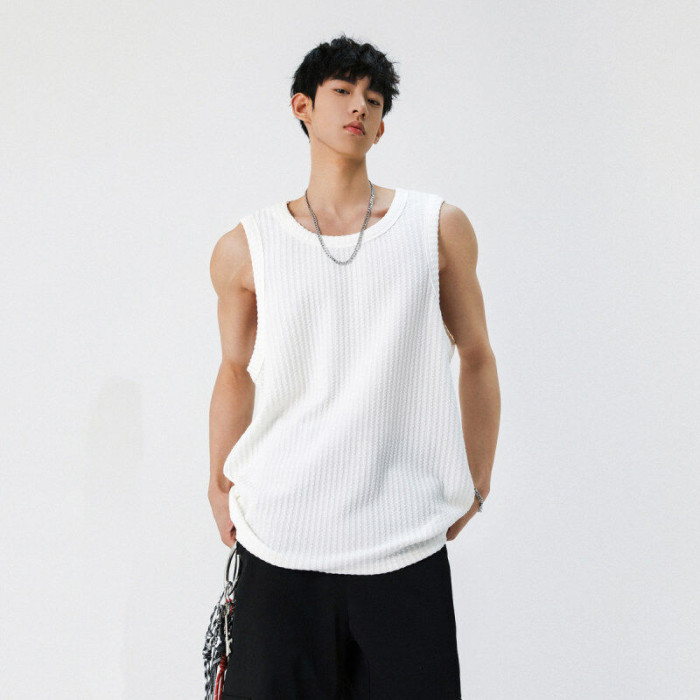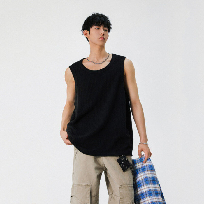 夏季2025新款美式純色無袖T恤男士潮流寬松百搭學生情侶坎肩背心