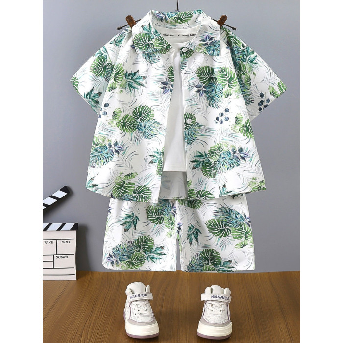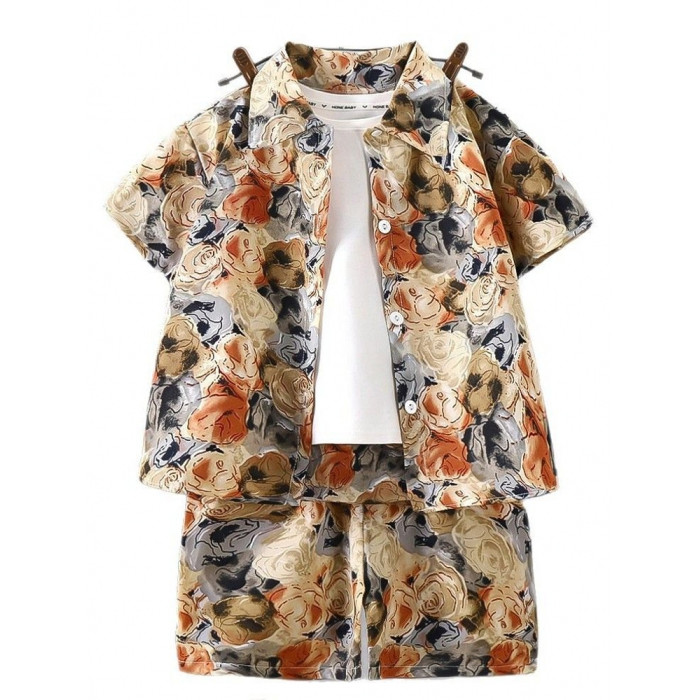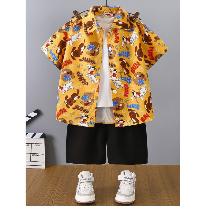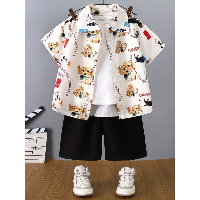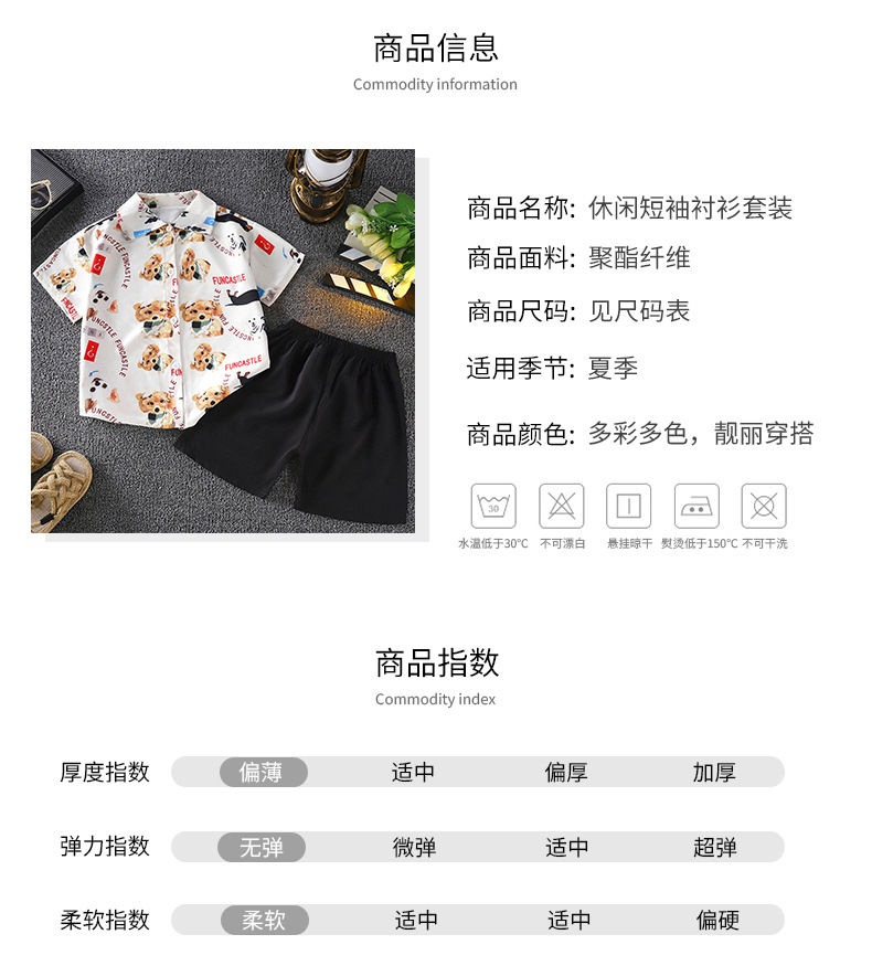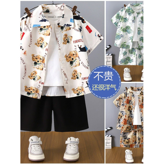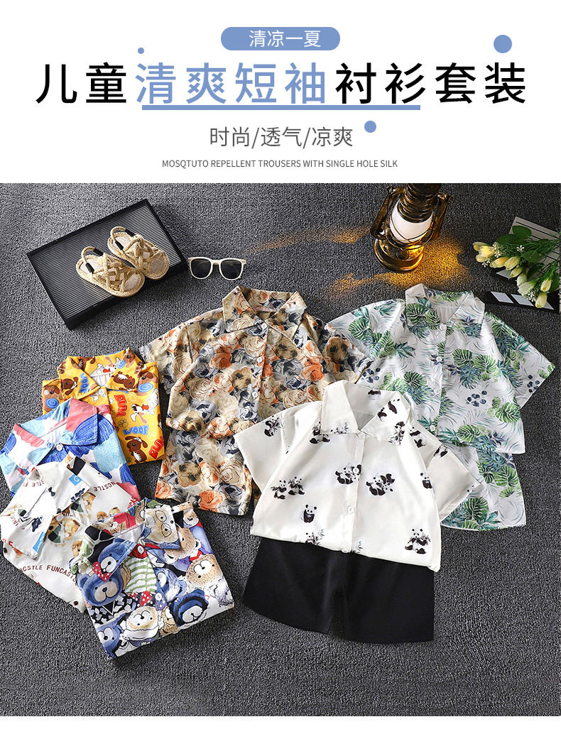 安哼安哼兒童襯衫套裝夏季新款2025男童休閒短袖短褲港風衣服夏裝