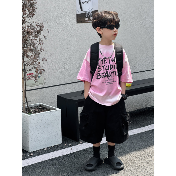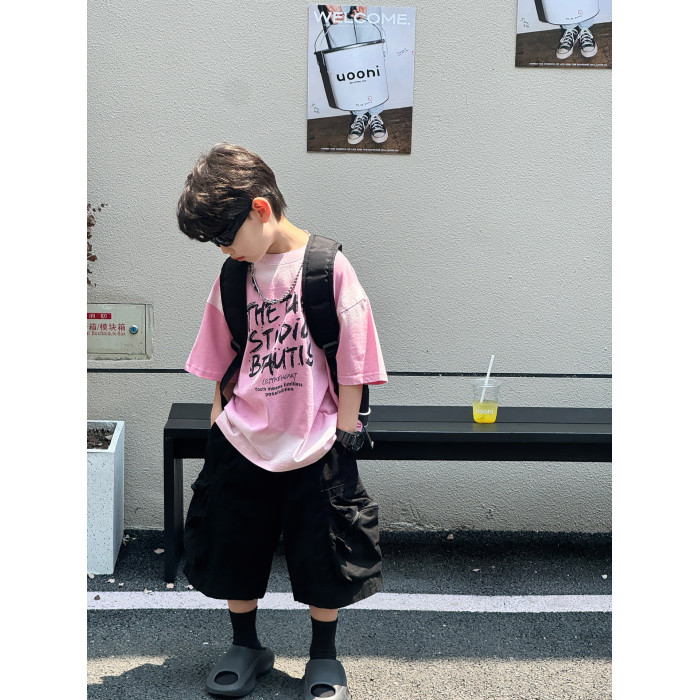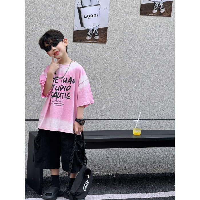 喬伊斯童裝025夏季新款韓版男童百搭軋染美式字母透氣t恤兒童上衣