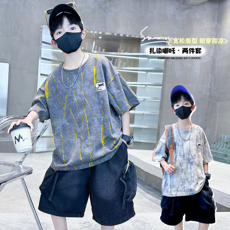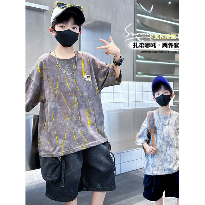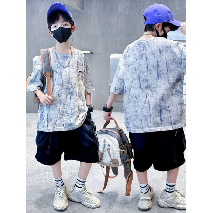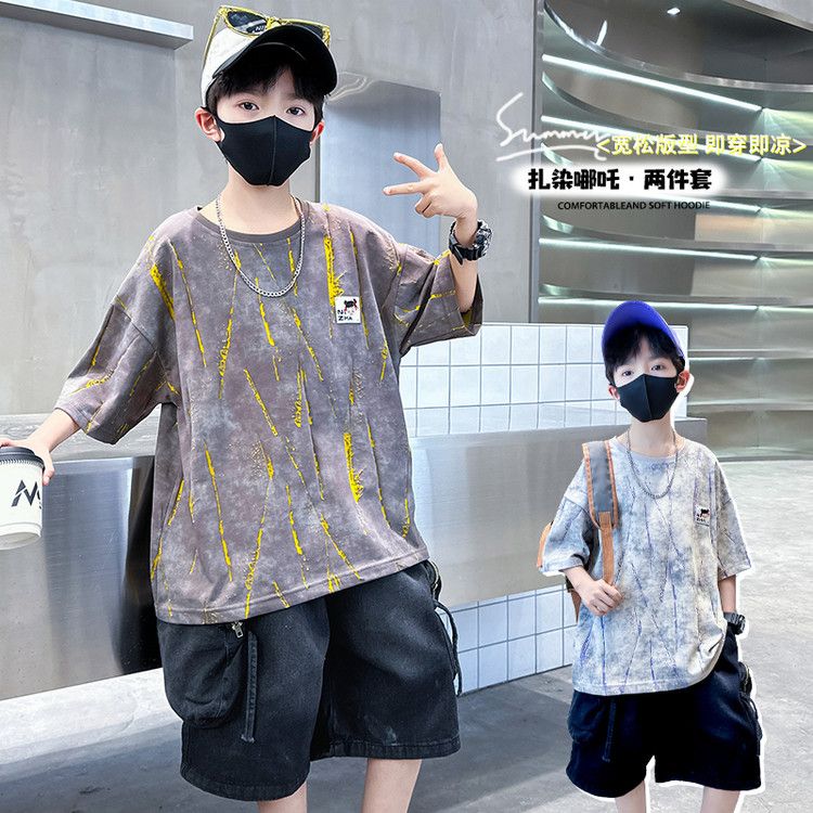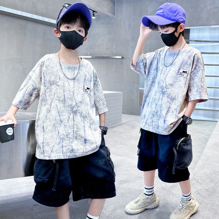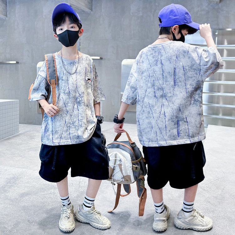 安哼安哼套裝韓版夏季印花男童