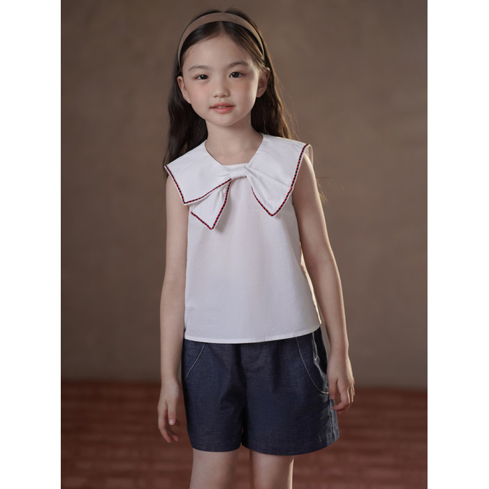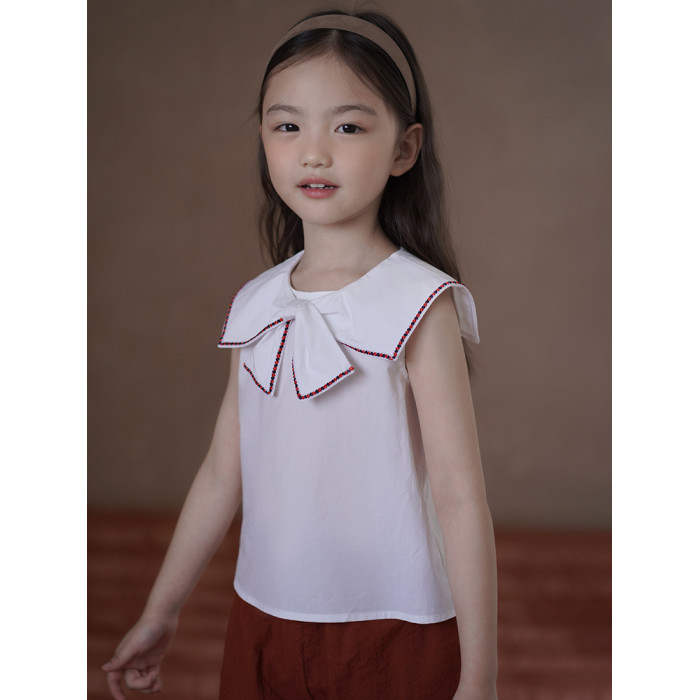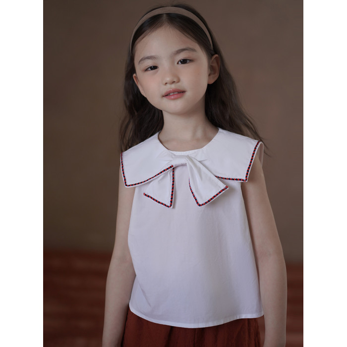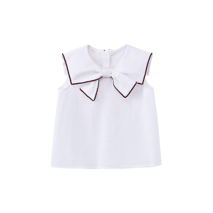 哈齒童裝夏季兒童上衣學院風大翻領女童無袖襯衫中大童夏裝25新款