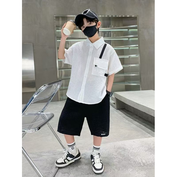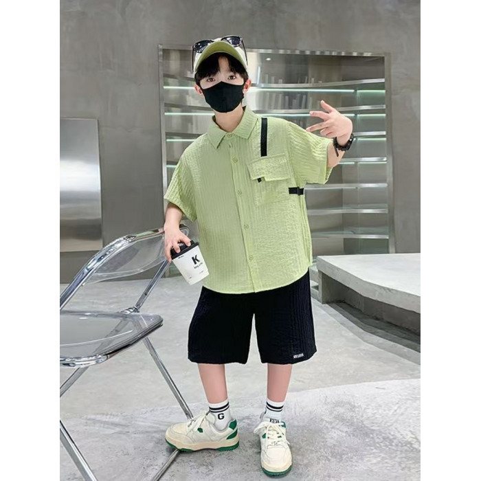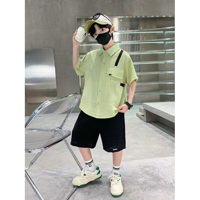 安哼安哼男童夏裝套裝2025新款兒童夏季薄款短袖襯衫中大童夏款洋