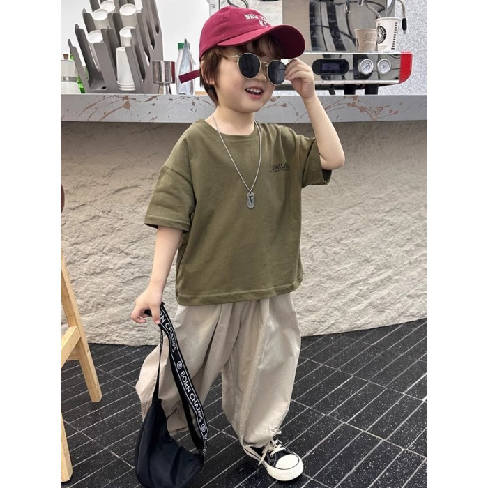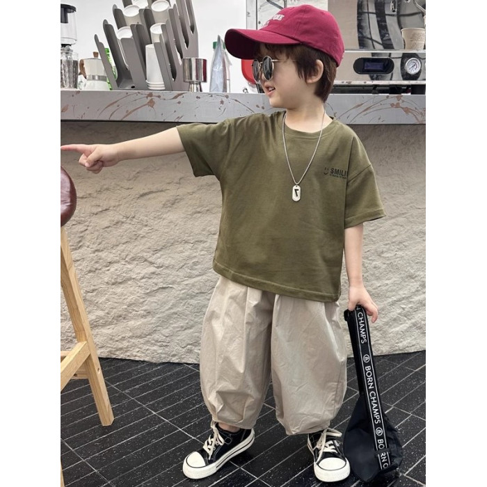 英國next svip男童夏裝短袖套裝2025新款兒童洋氣t恤寬松燈籠長褲