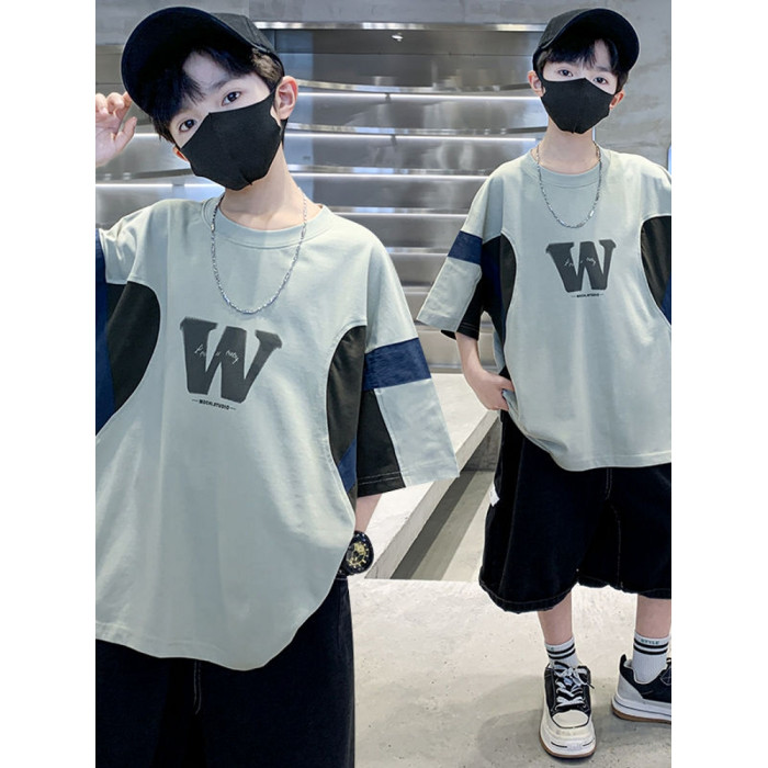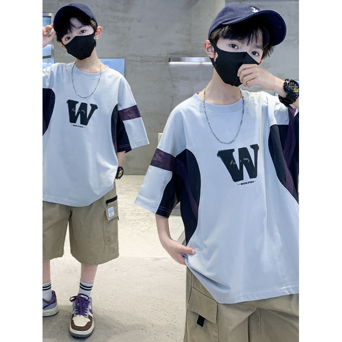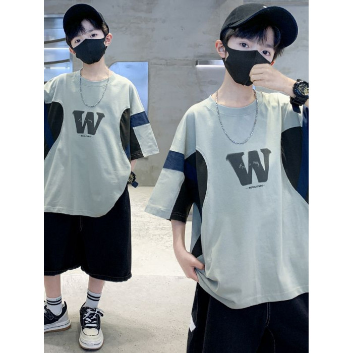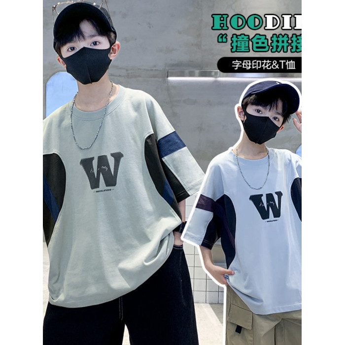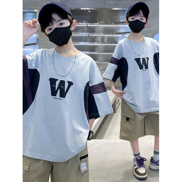 安哼安哼男童短袖t恤25新款夏款中大童紅色字母印花寬松半袖男孩