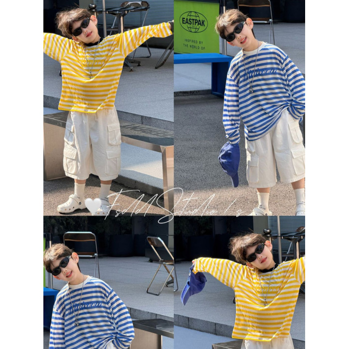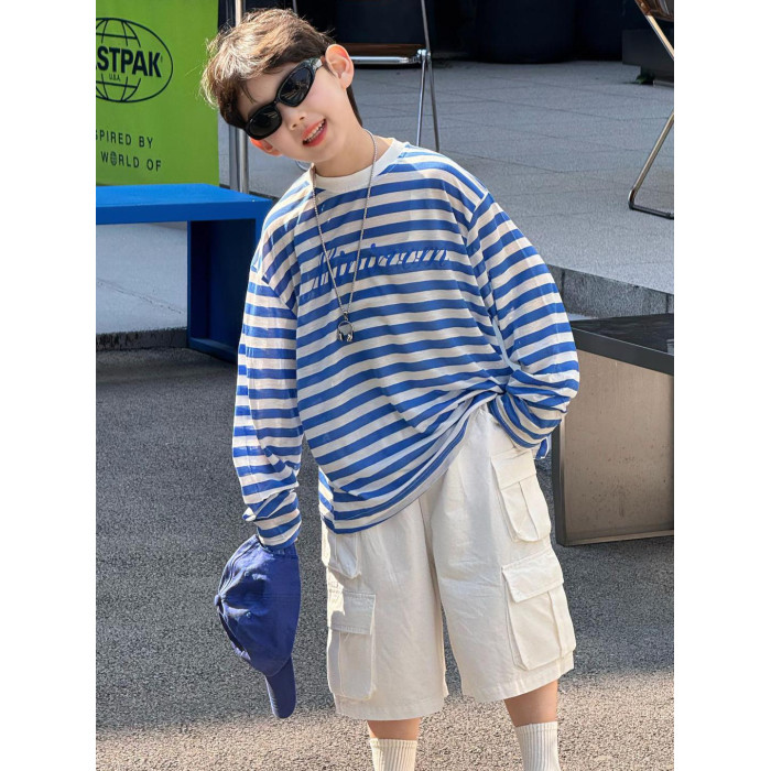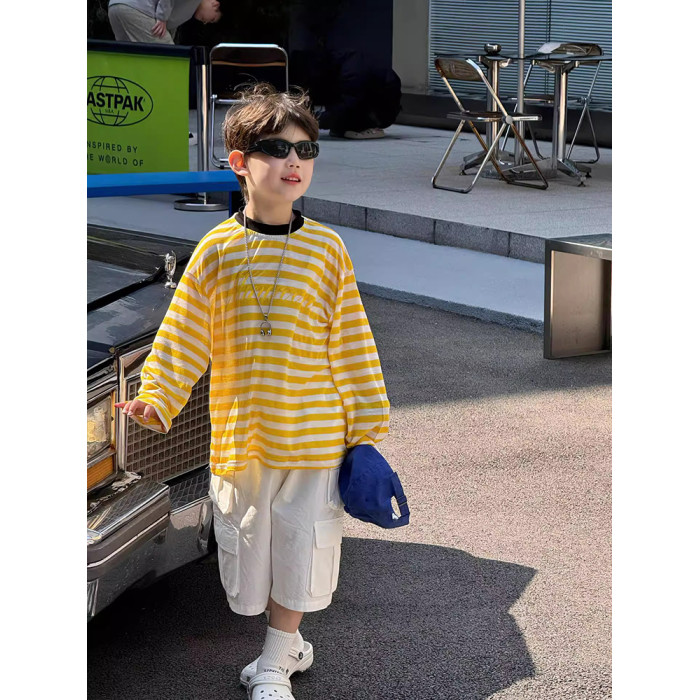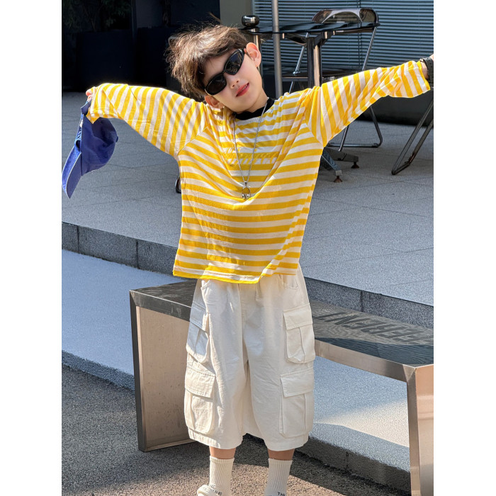 韓版男童百搭條紋防曬衣T恤兒童寶寶長袖透氣寬松輕薄打底上衣夏