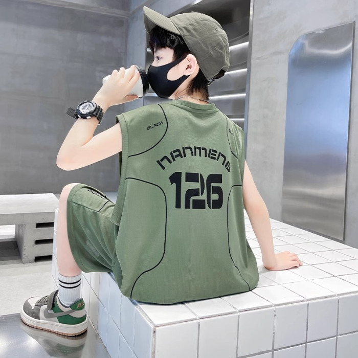 兒童裝男童夏裝無袖套裝2025新款夏季中大童速乾冰絲夏款帥氣