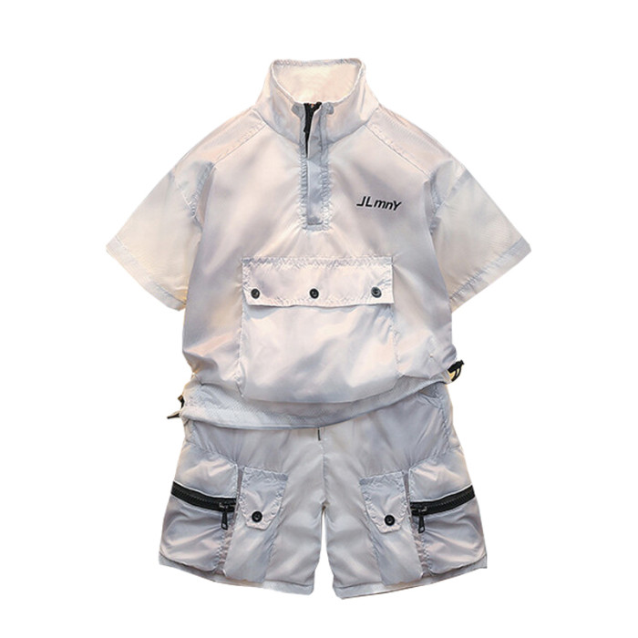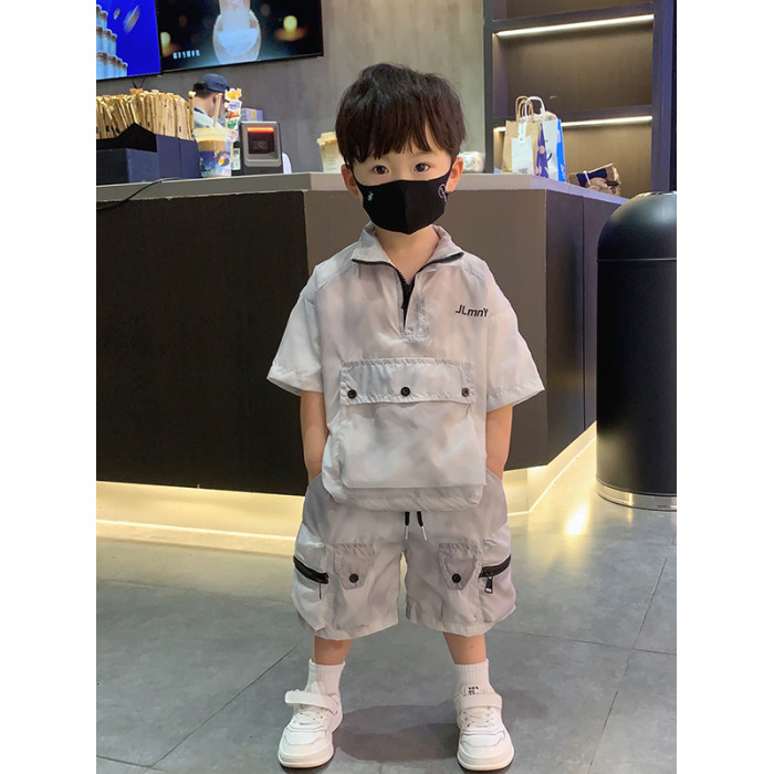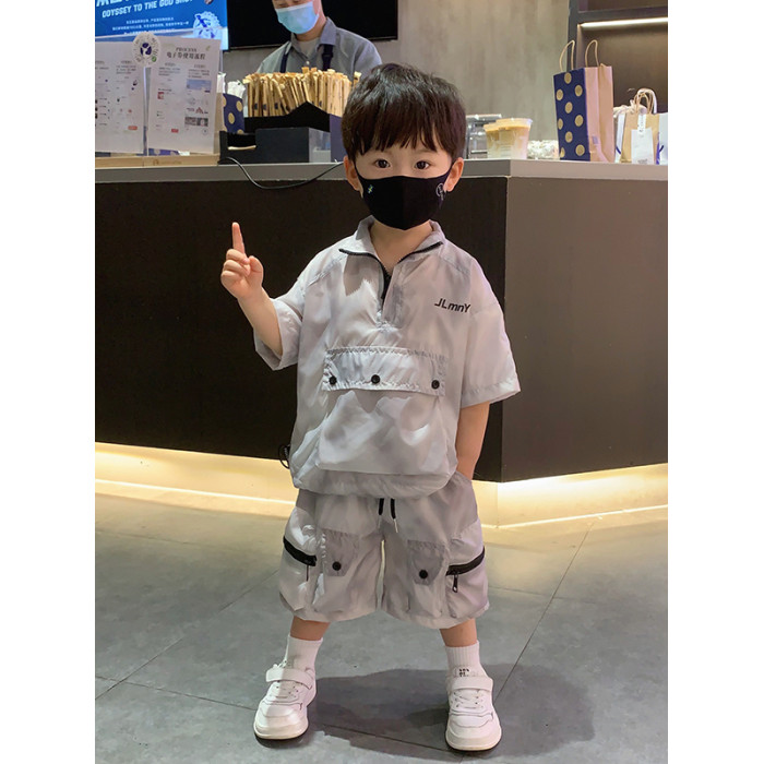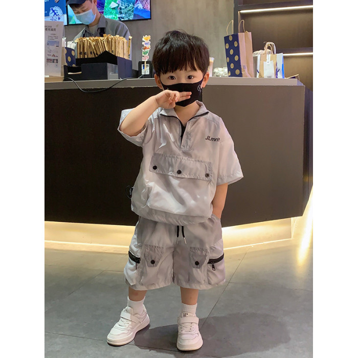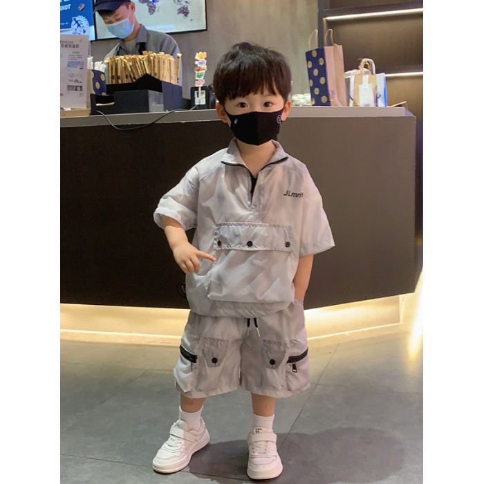 香港BAKUXIA男童防曬衣套裝夏季款韓版中小童工裝短袖短褲兩件套