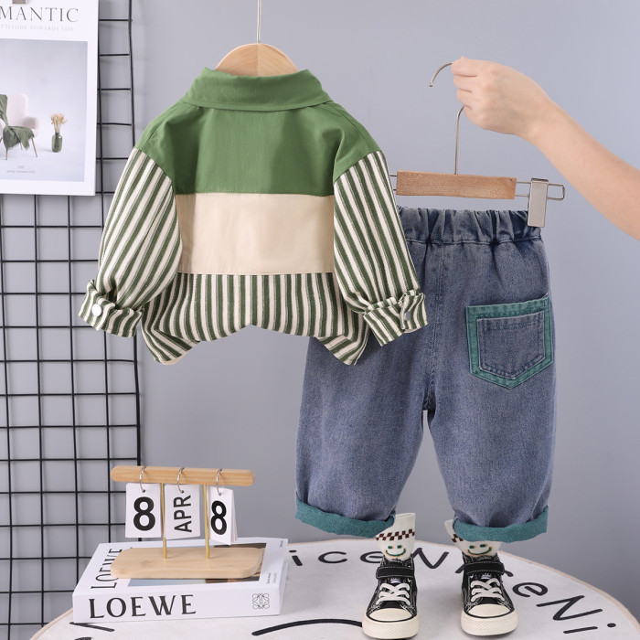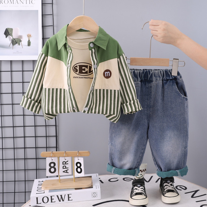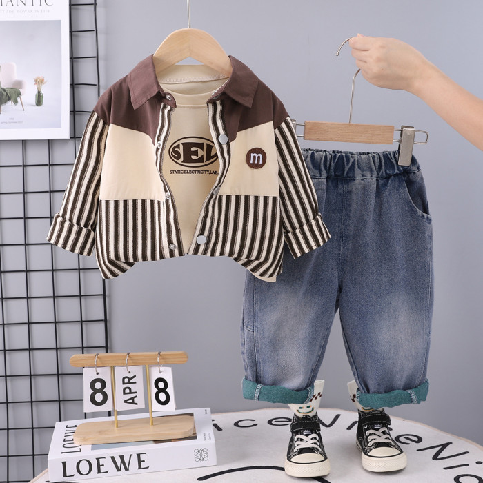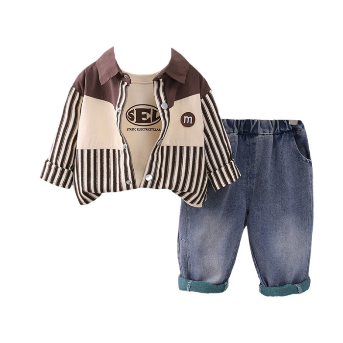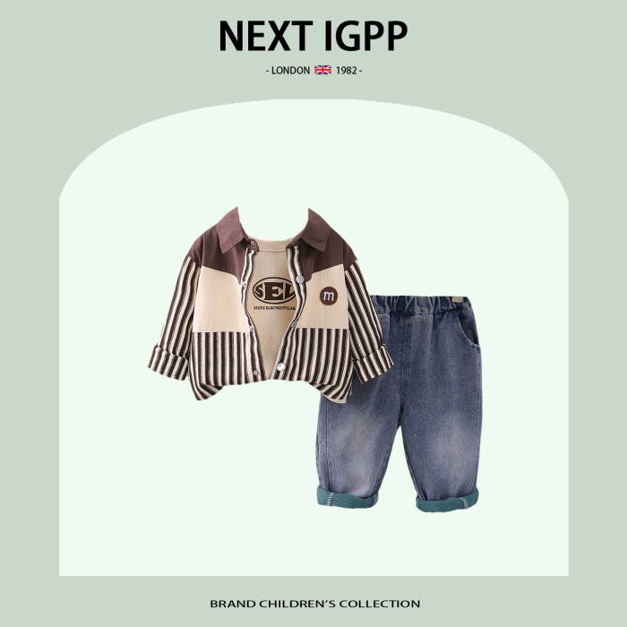 英國NEXT IGPP 新款男童時尚套裝春秋裝條紋外套牛仔長褲三件套潮