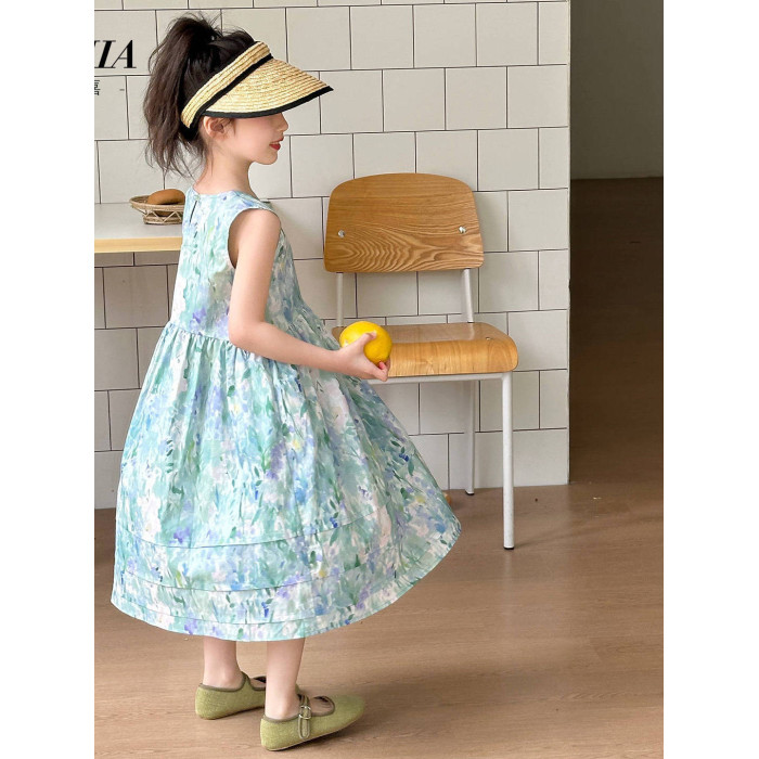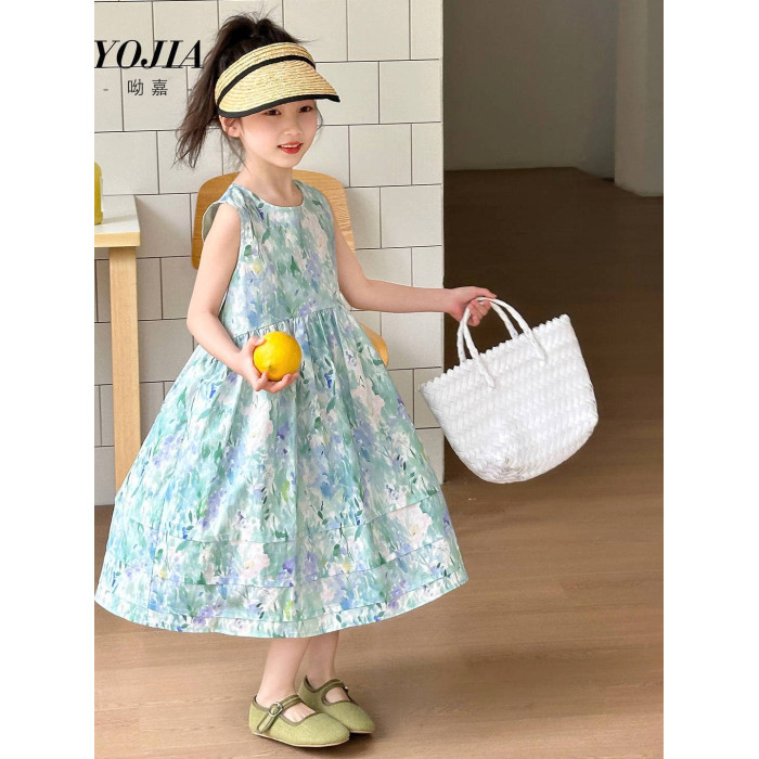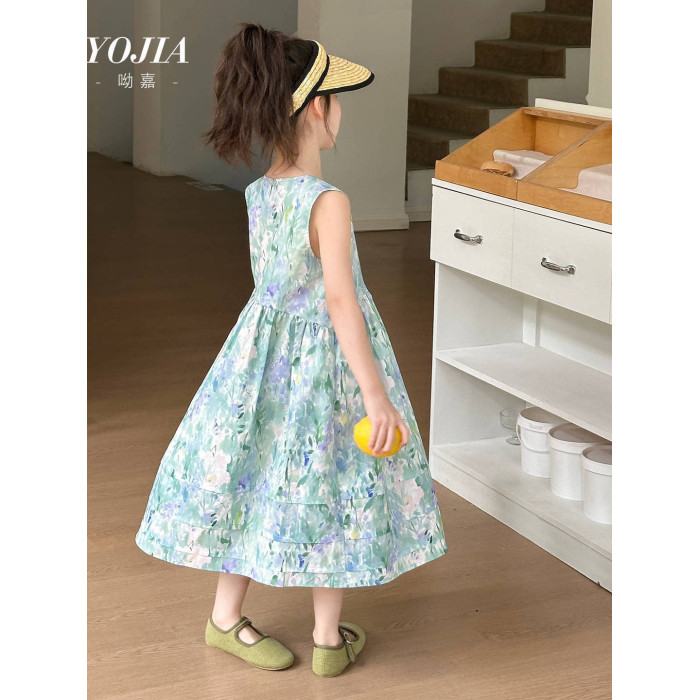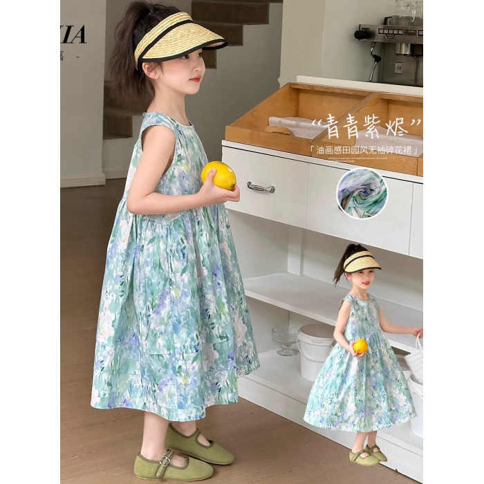 女童夏季田園風無袖碎花連衣裙2025新款洋氣女孩公主裙兒童裝裙子