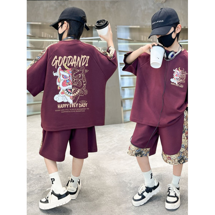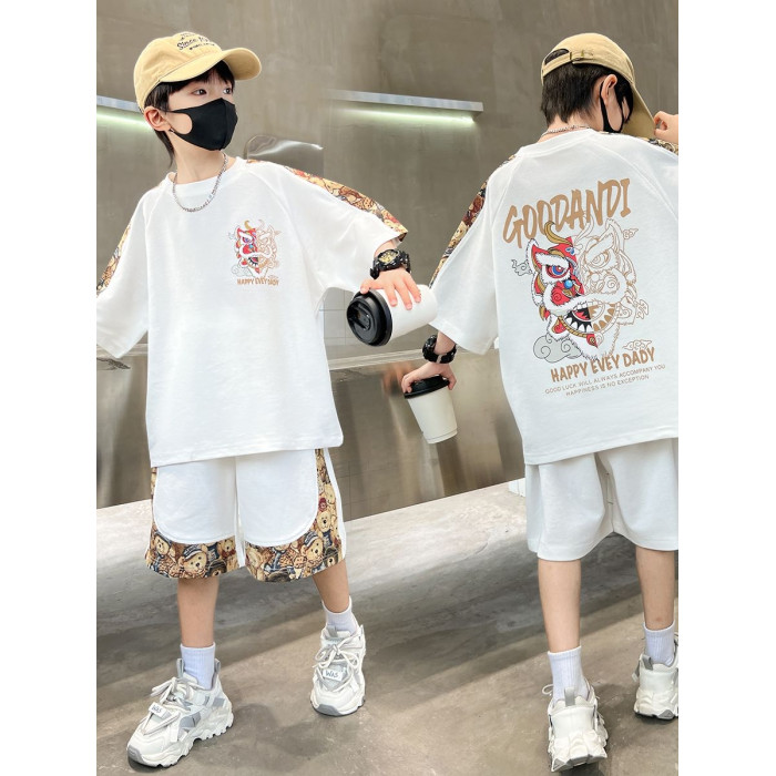 男童夏季套裝2025新款中大童裝夏裝洋帥氣時髦男孩短袖夏款衣服潮