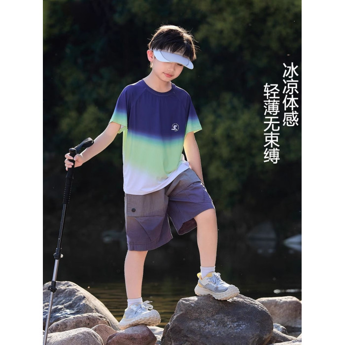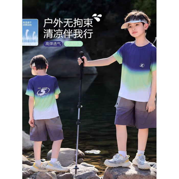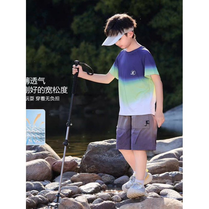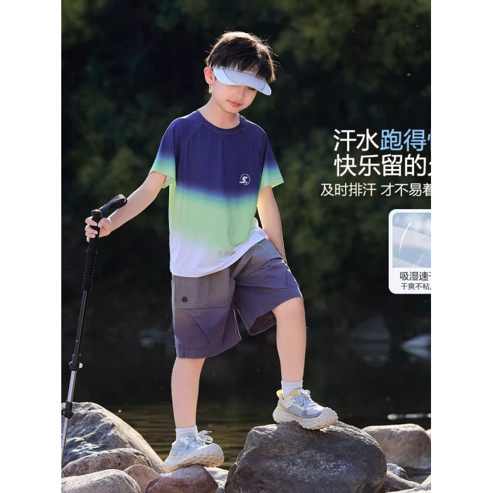 安哼安哼男童夏季套裝2025新款兒童速乾運動短袖T恤工裝短褲兩件