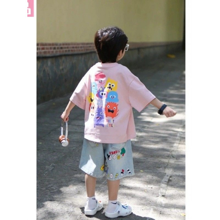 安哼安哼男童夏季新款套裝短袖T恤兒童韓系休閒寬松男孩洋氣炸街