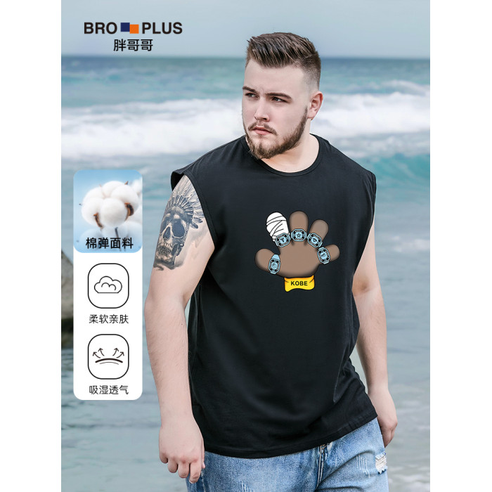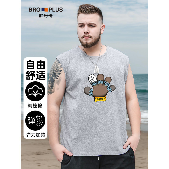 胖哥哥大手掌背心男大碼寬松加肥加大純棉透氣舒適胖子肥佬無袖衫