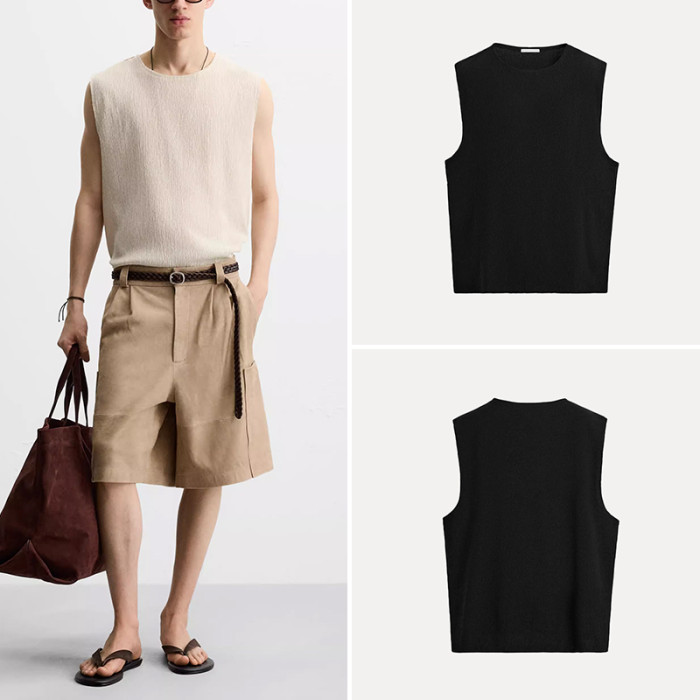 櫃219!2025年夏季新款男裝日常寬松凸飾背心式無袖T恤4087469
