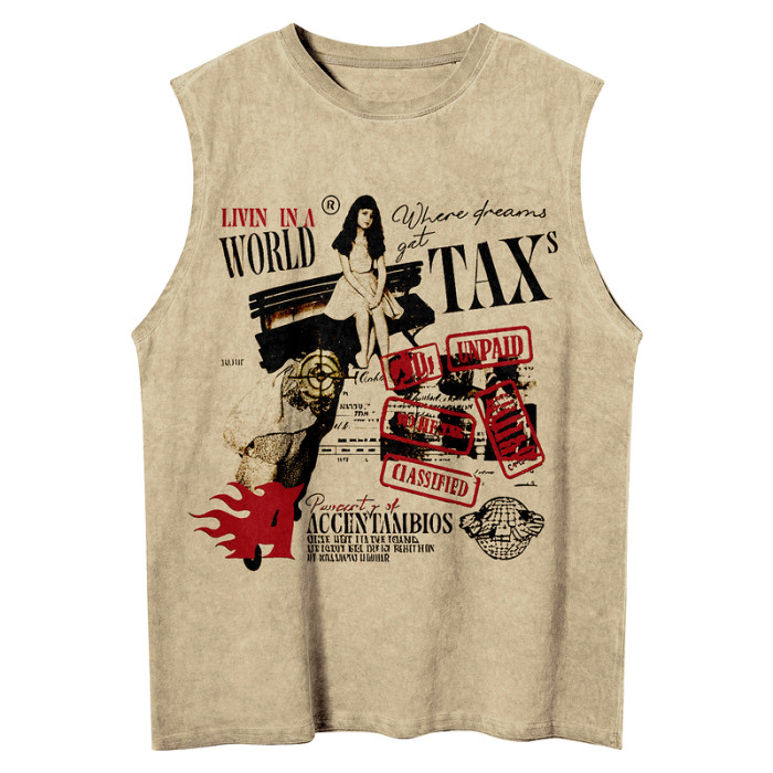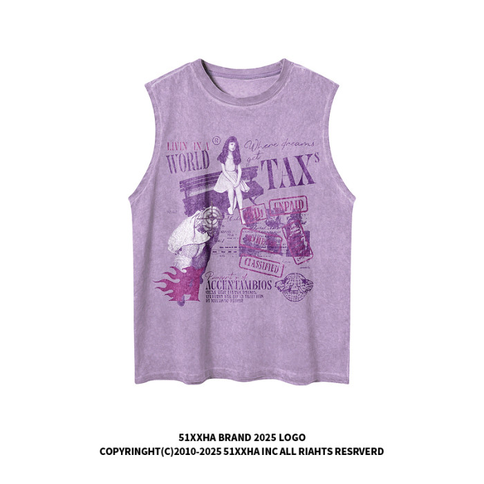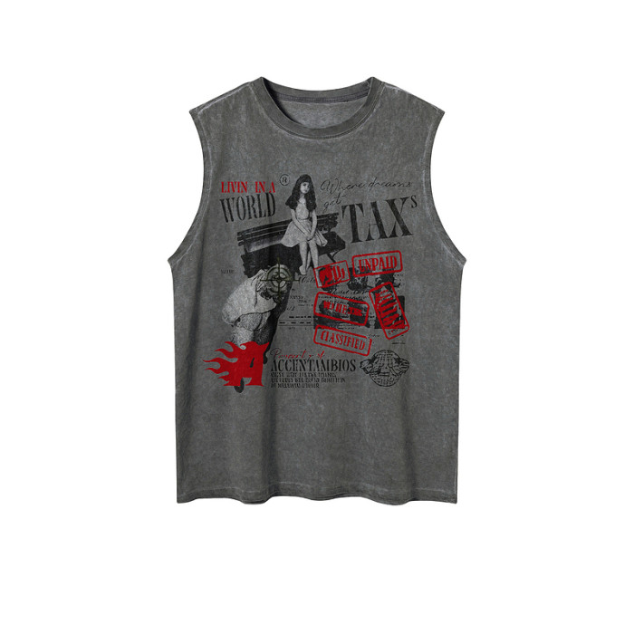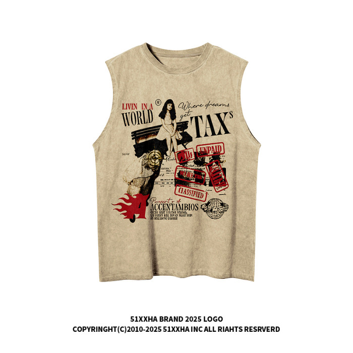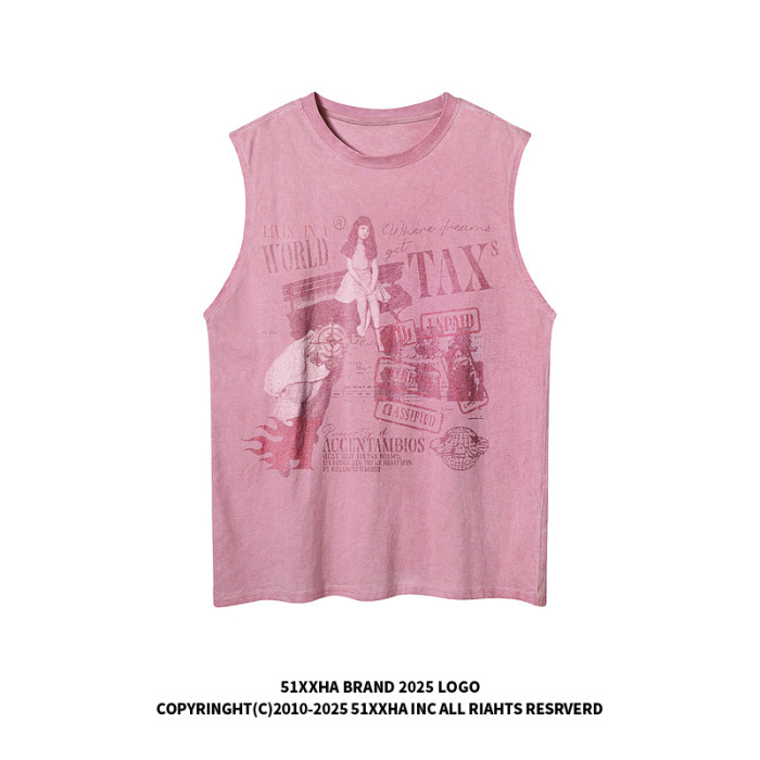 51嘻哈美式復古印花運動坎肩背心男夏季潮牌寬松休閒情侶無袖T恤