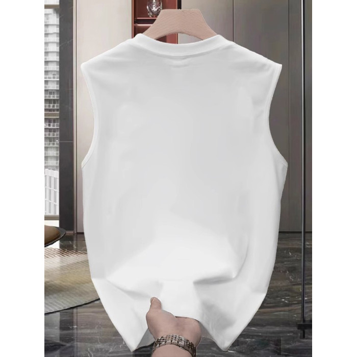 高級黑色純棉無袖T恤背心男士2025新款夏季潮牌重磅寬松坎肩男款