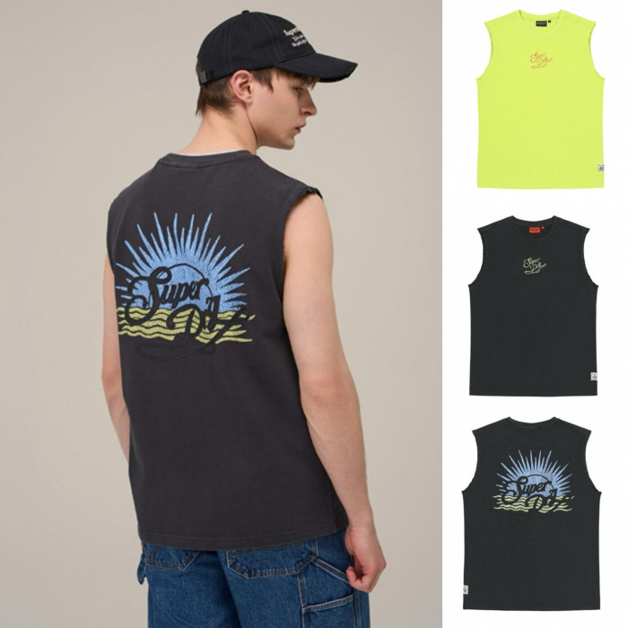 Superdry極度乾燥25SS風格印花時尚休閒寬肩質感無袖T恤背心