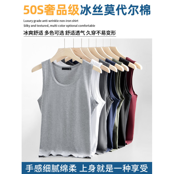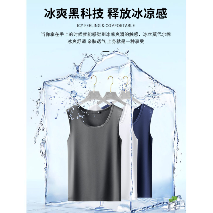 GM莫代爾冰絲背心男士速乾夏季薄款無袖t恤運動健身跨欄坎肩汗衫