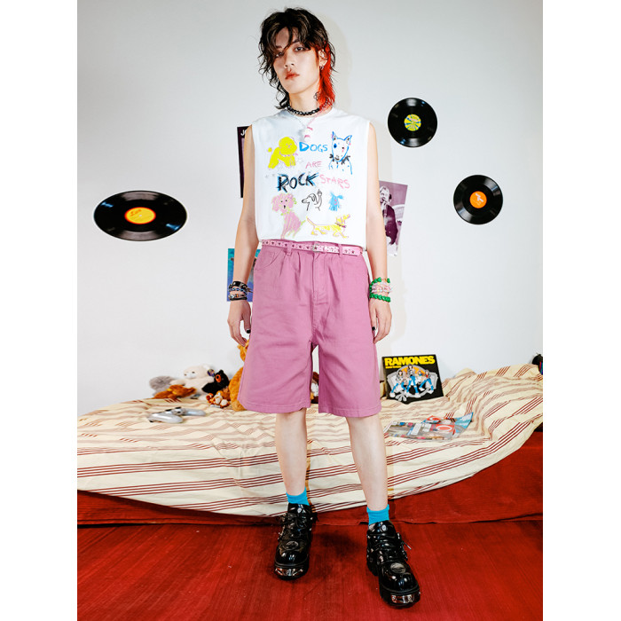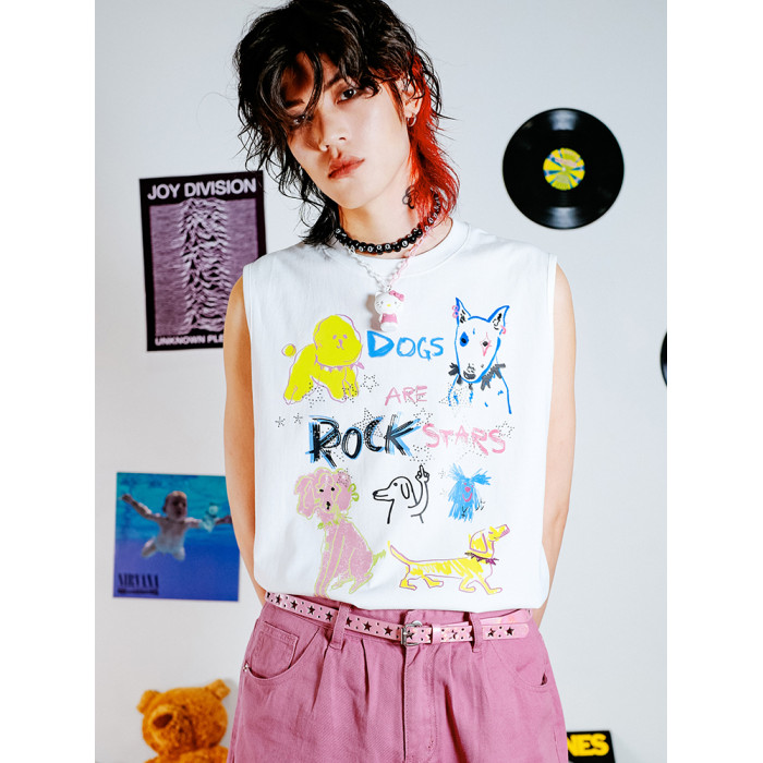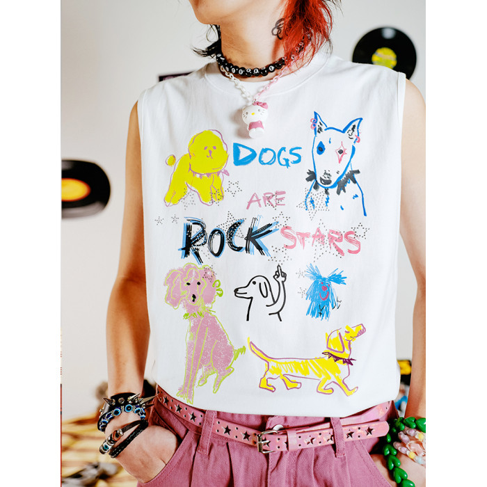 別閙BIZZCUT/狗狗明星/寬松手繪燙鑽可愛無袖t恤男背心女上衣坎肩